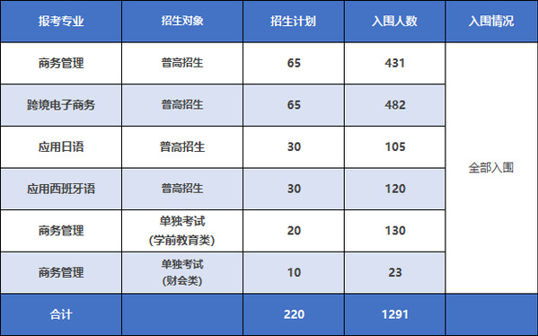 浙江越秀外国语学院2026年高职提前招生计划220人。根据浙江省教育考试院和《浙江越秀外国语学院2026年高职提前招生章程》等相关规定,报名工作于2026年3月20日17点结束。在学校高职提前招生领导小组组织指导下,招生办公室已完成对所有报名考生的报名资料、学考成绩等信息复核工作,共有1291人获得综合素质测试资格。有关事项公告如下: