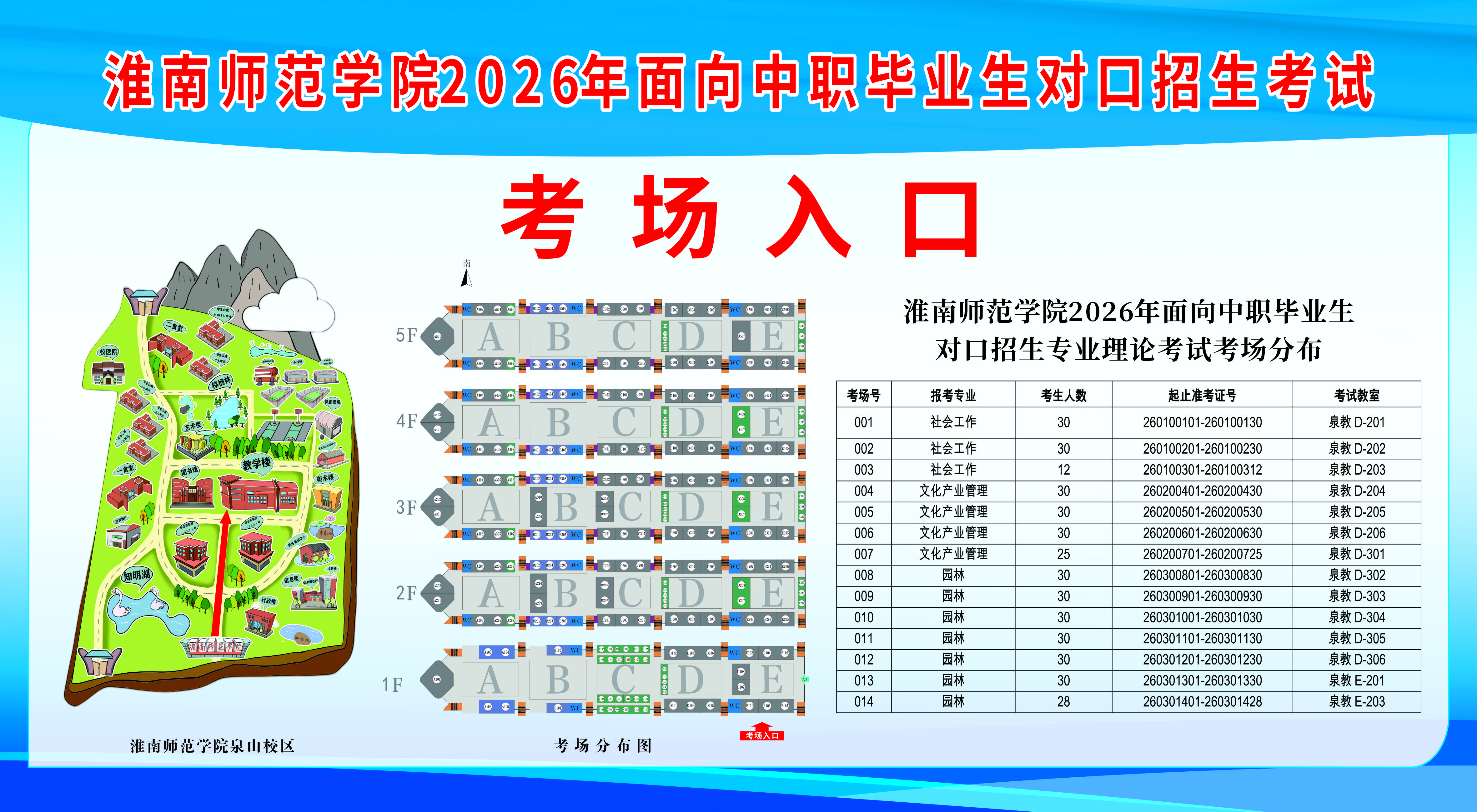淮南师范学院2026年面向中职对口招生考试考场分布图