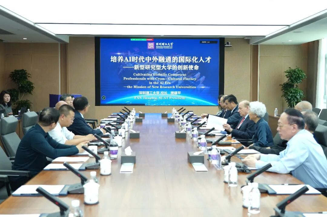 当日上午,包括David Leebron在内的7位中外名校校长、诺奖得主、中国科学院院士相聚深圳理工大学,参加深圳理工国际战略顾问会议,围绕新型研究型大学建设、AI时代国际化人才培养、学科交叉创新、产教融合发展等议题展开研讨。