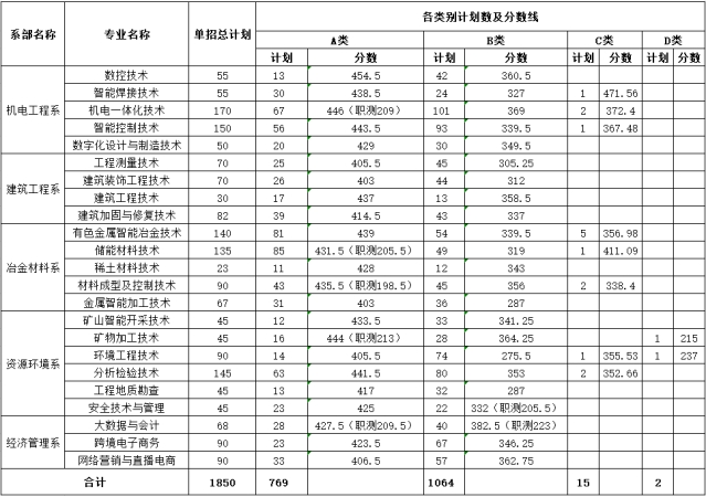 附件1:湖南有色金属职业技术学院2026年单独招生考试各专业分类别计划及录取分数线