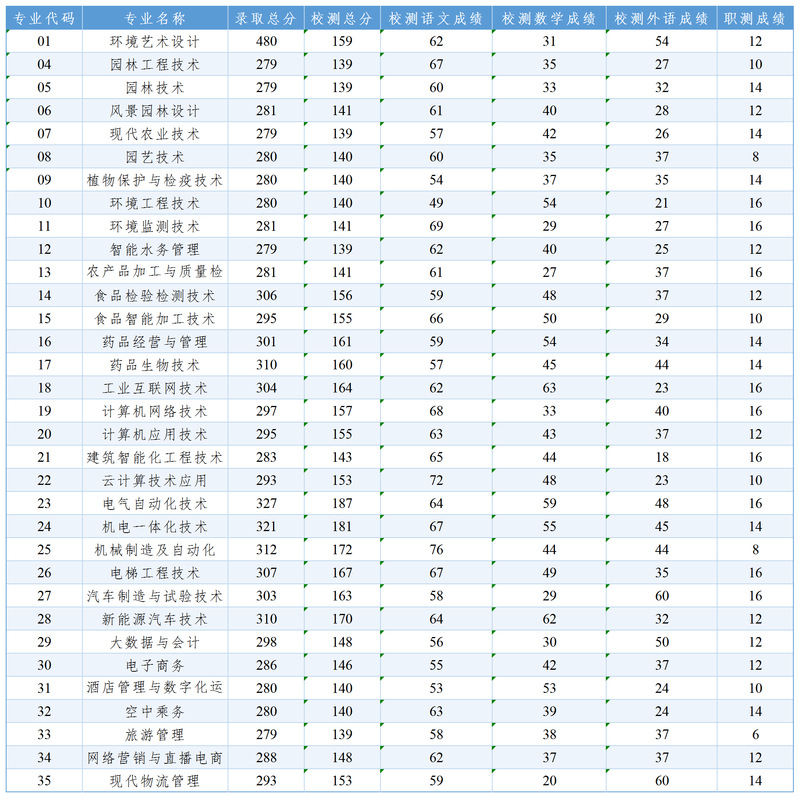 根据录取规则,按考生总成绩(含赋分)由高分到低分录取,若总分相同,依次按校测总分、语文、数学、外语、职测成绩排序择优录取。