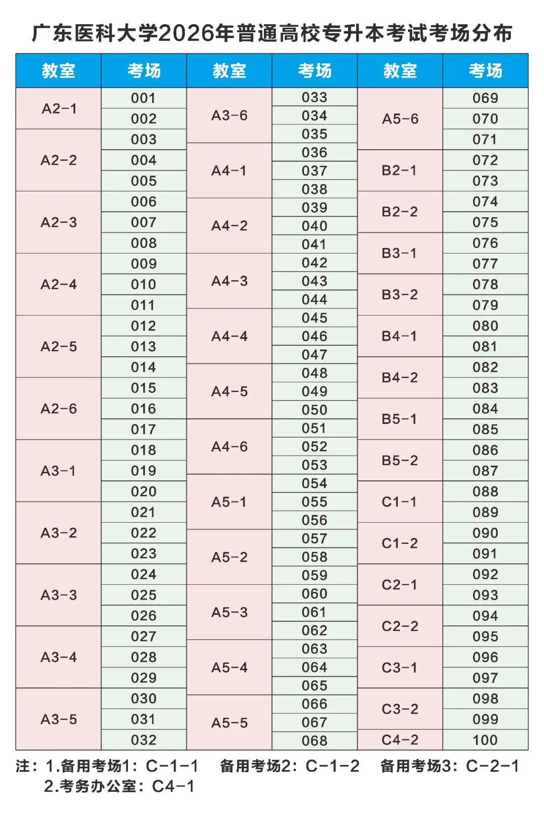 具体考场安排如下: