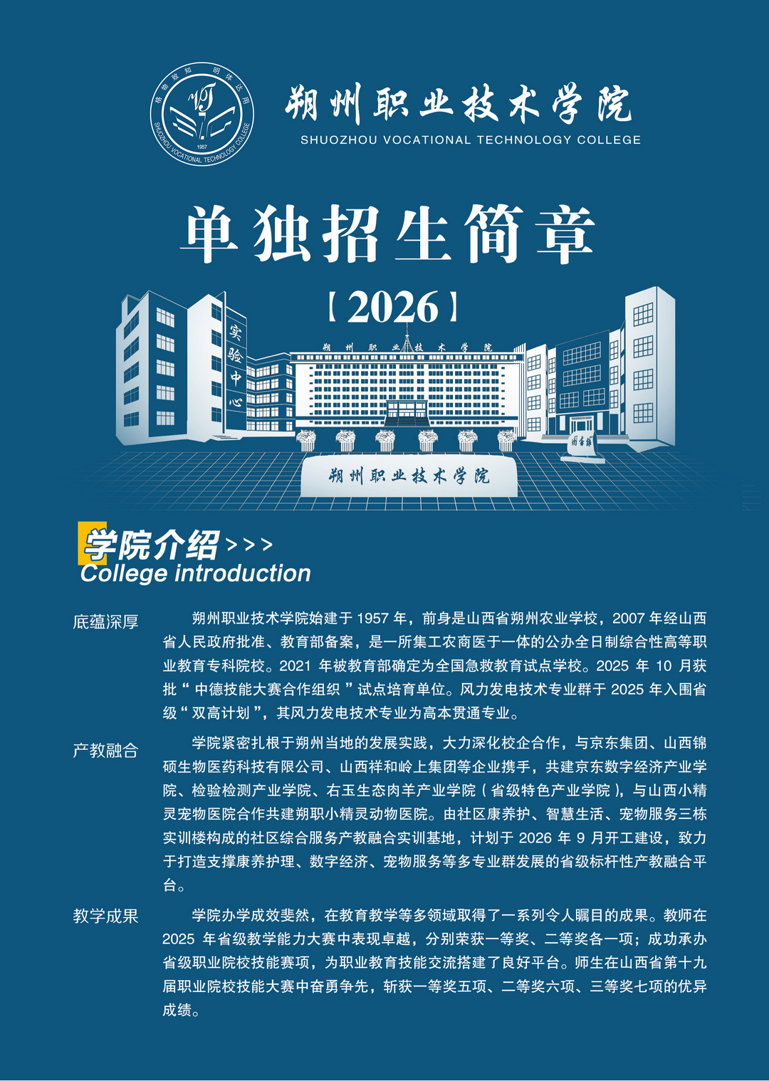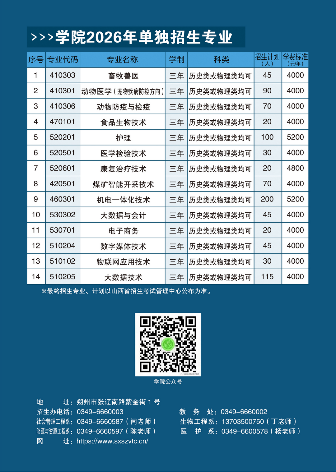 朔州职业技术学院2026年单独招生简章