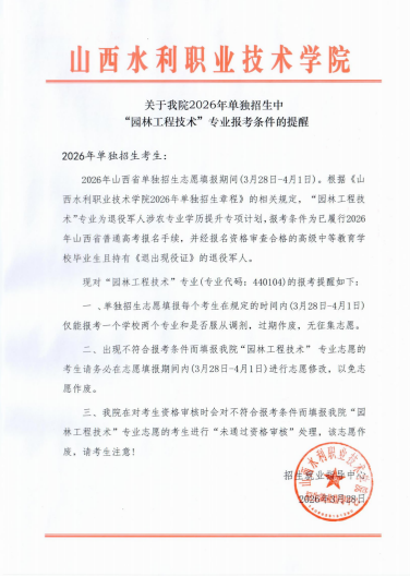 关于我院2026年单独招生中 “园林工程技术”专业报考条件的提醒