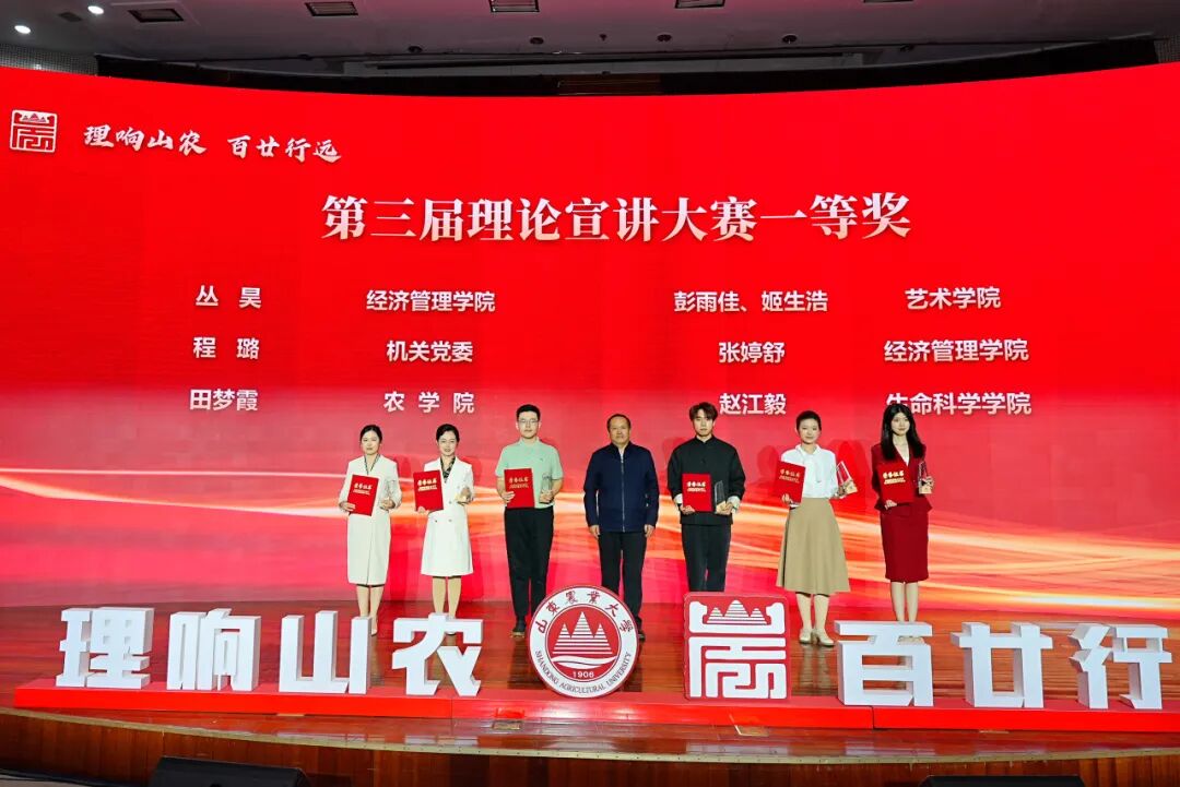 3月26日,由党委宣传部主办、马克思主义学院、经济管理学院承办的“理响山农,百廿行远”学校第三届理论宣讲大赛决赛在岱宗校区举行。现场气氛热烈,16名选手依次登台,用真挚的语言和创新的形式,生动展现了山东农大人坚定理想信念、传承奋斗精神、积极担当作为的良好风貌。学校党委书记张然,党委副书记嵇景涛出席活动并分别为“优秀组织单位”和获奖选手颁奖。