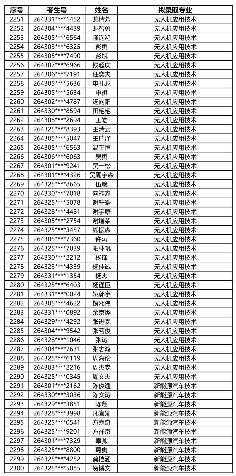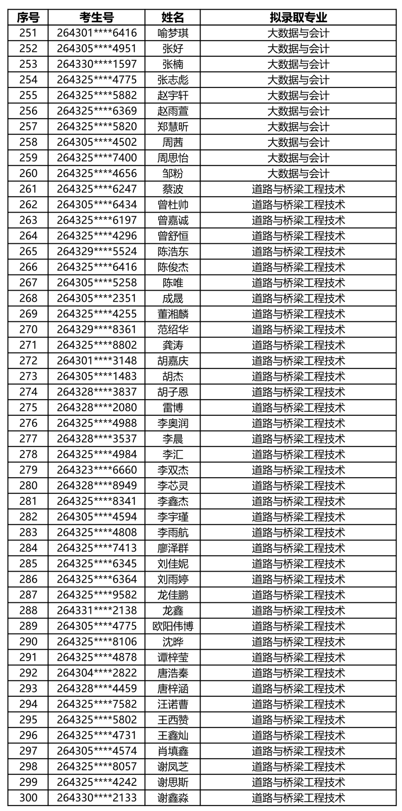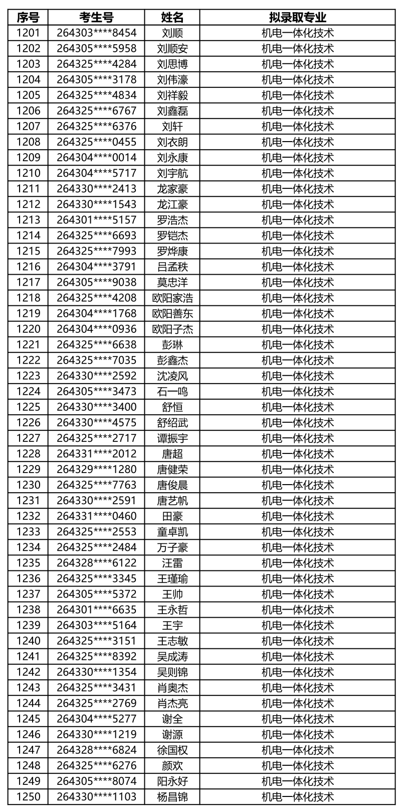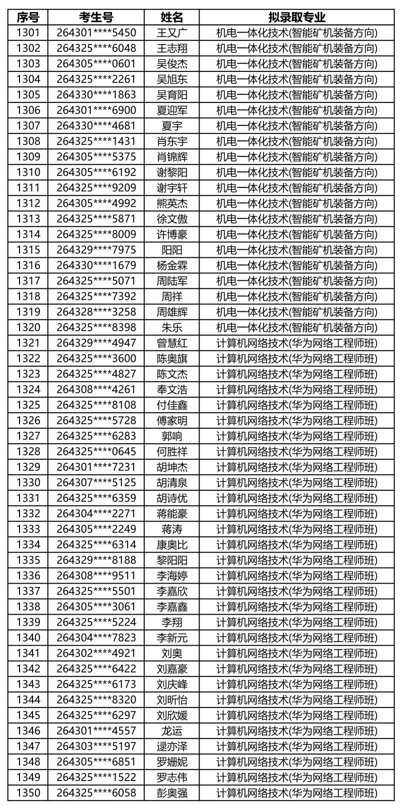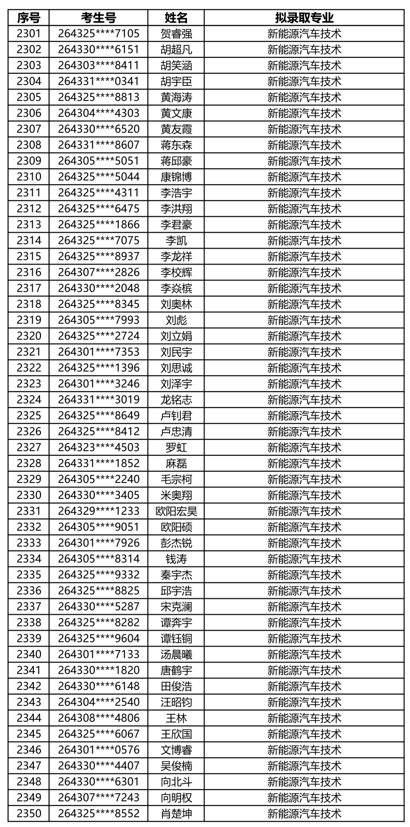 娄底职业技术学院2026年单独招生拟录取名单