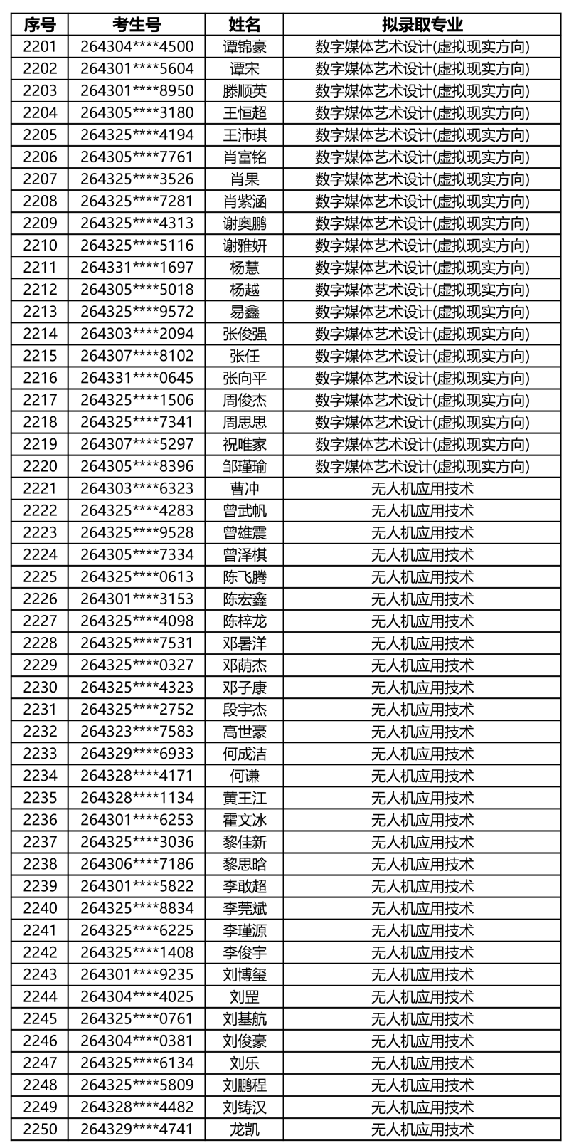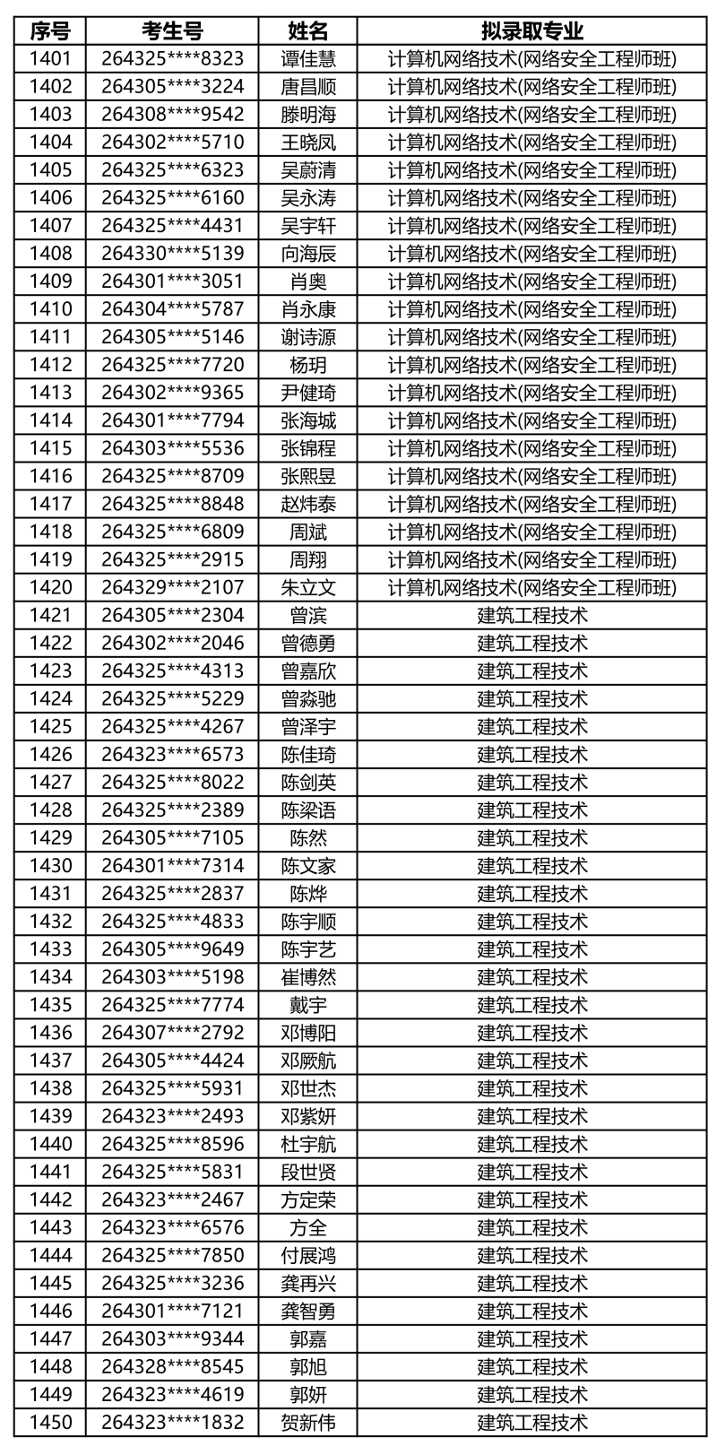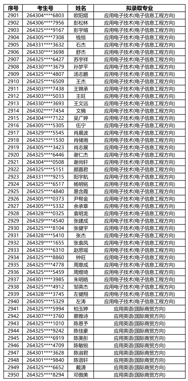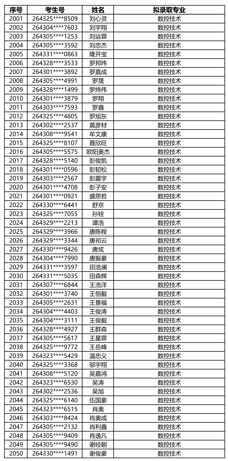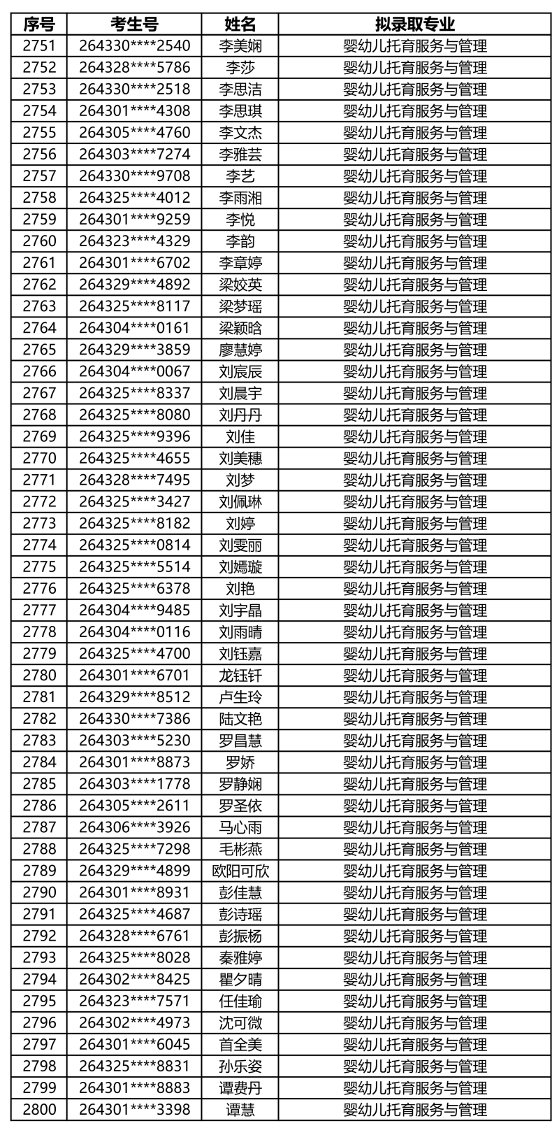 娄底职业技术学院2026年单独招生拟录取名单