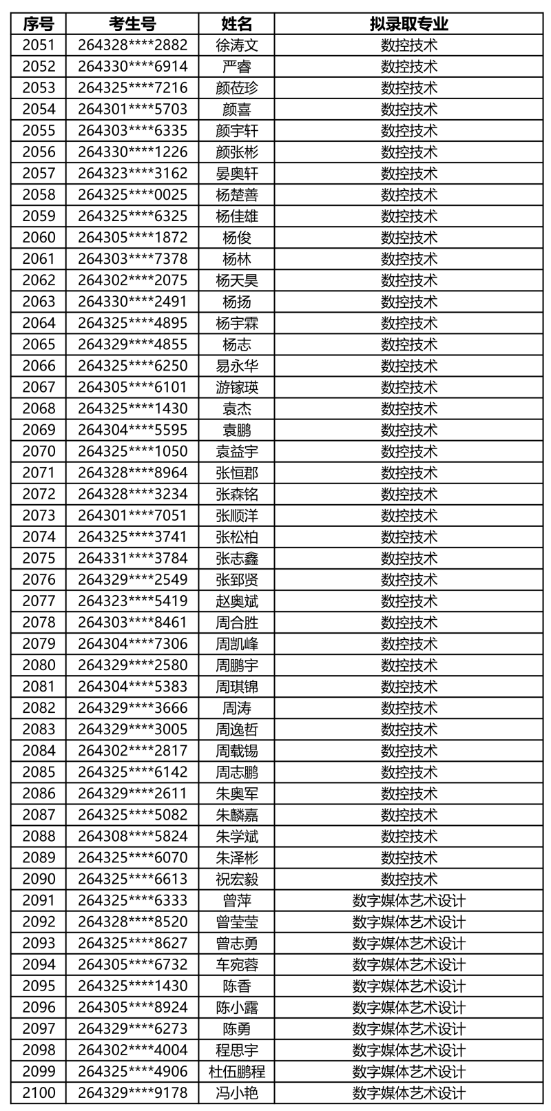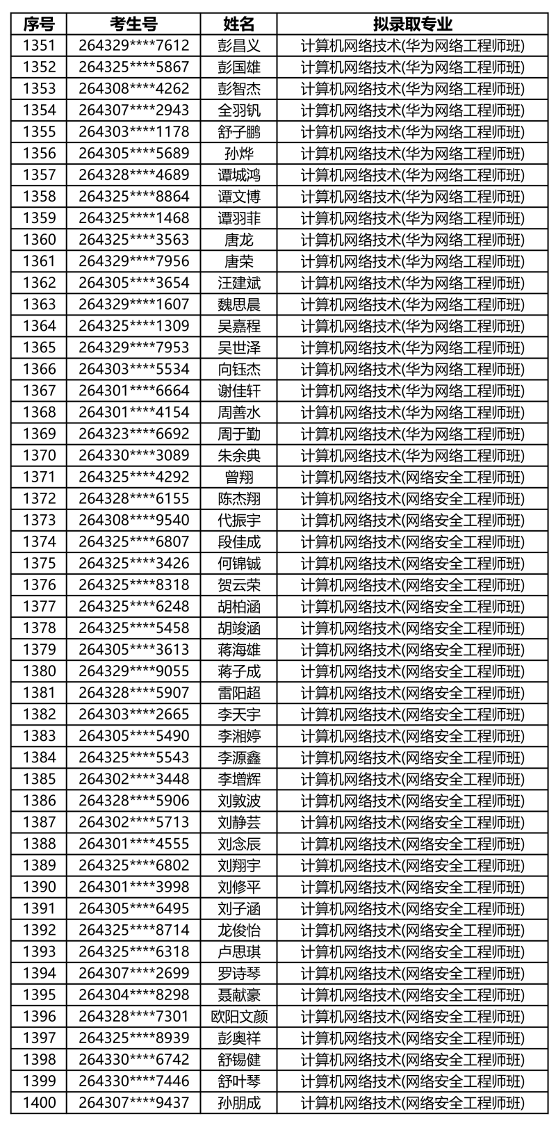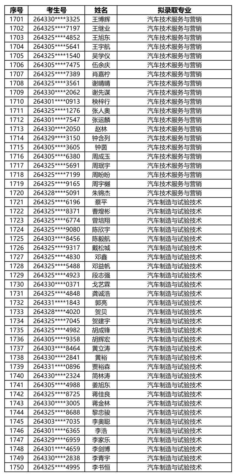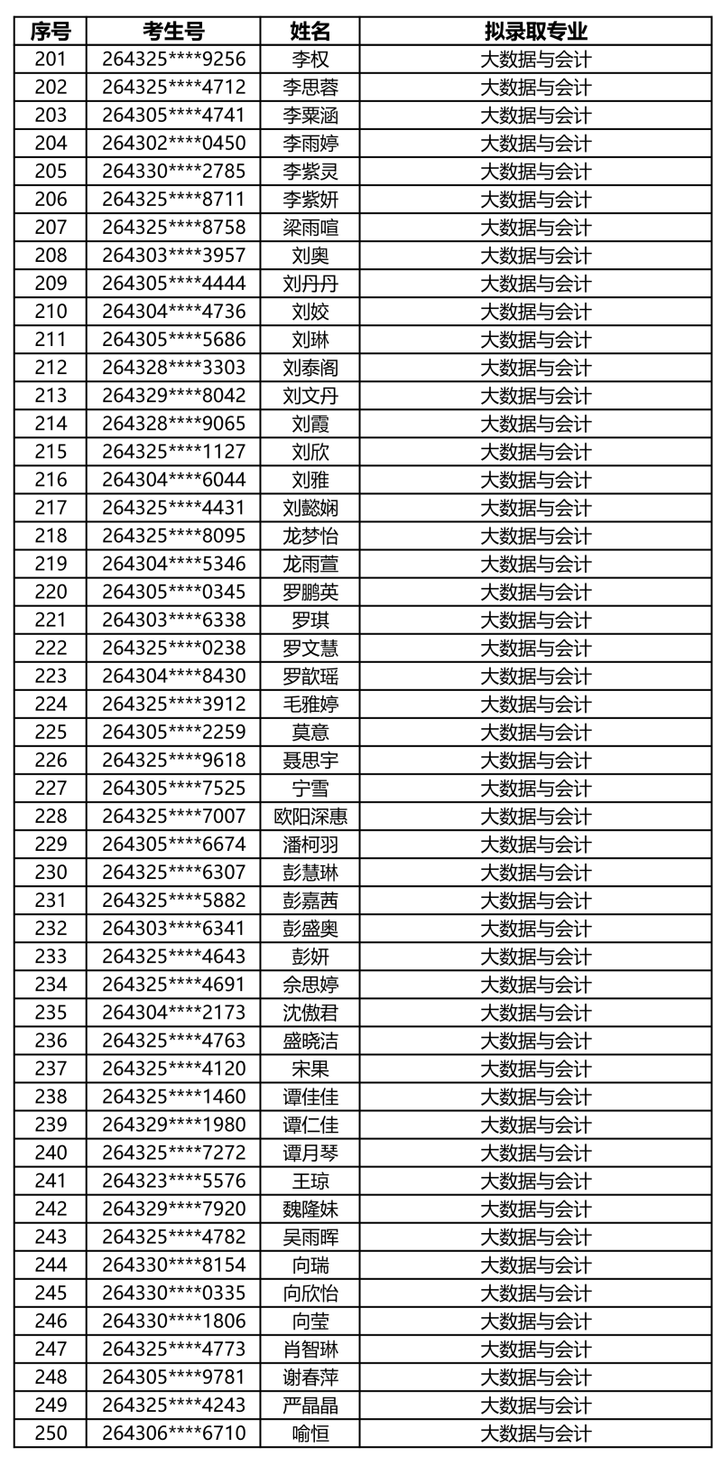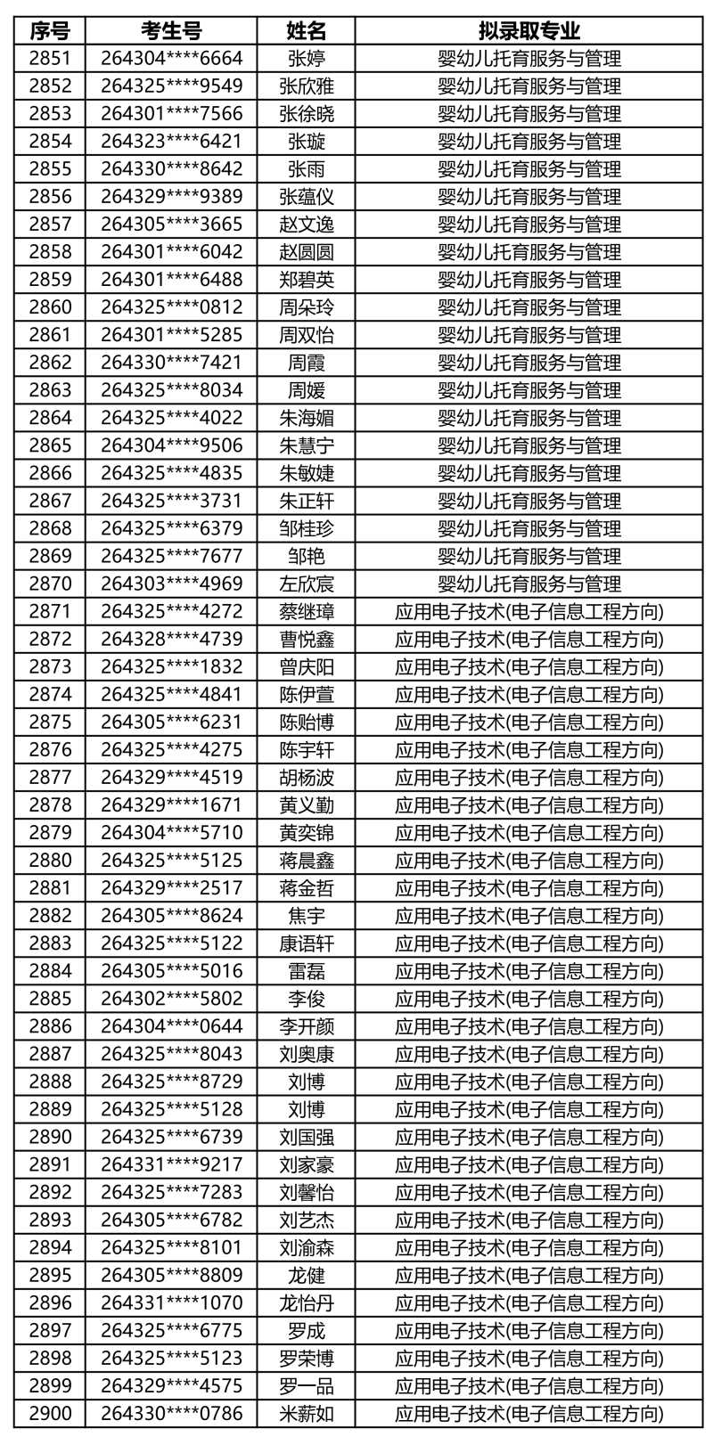 娄底职业技术学院2026年单独招生拟录取名单