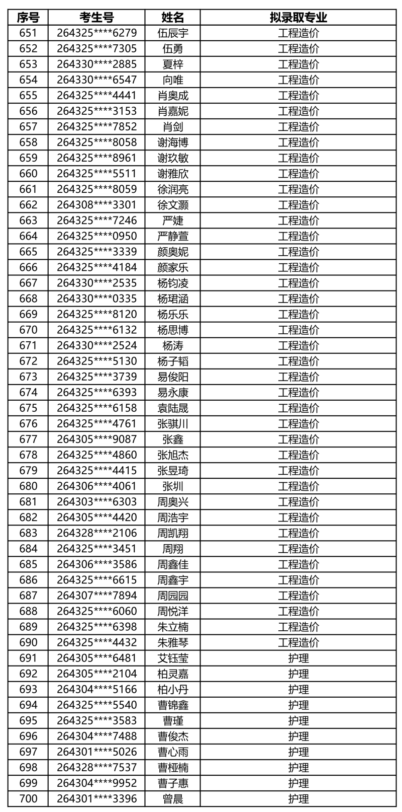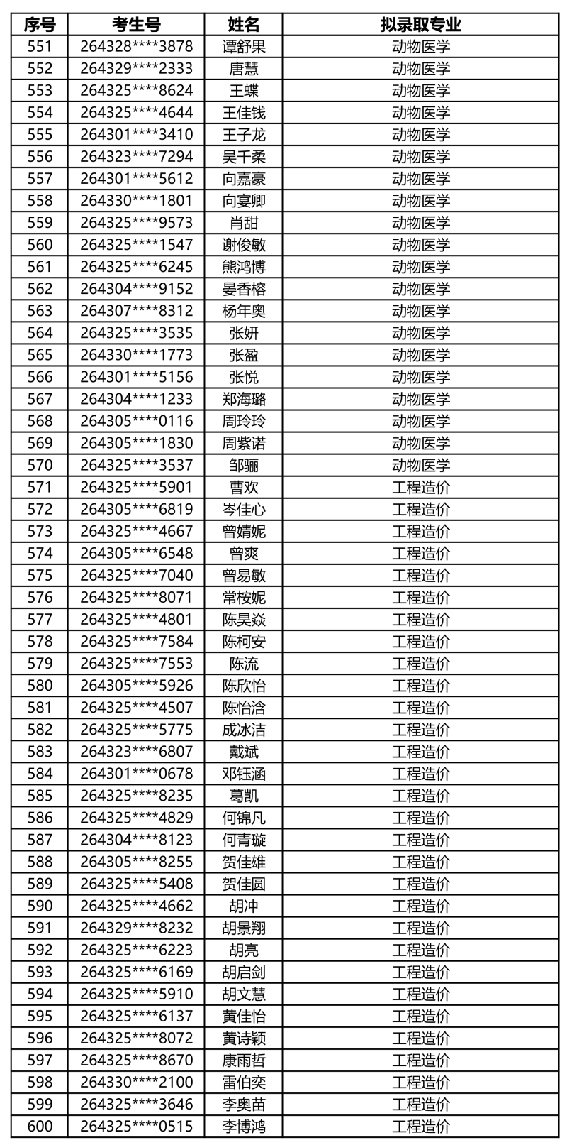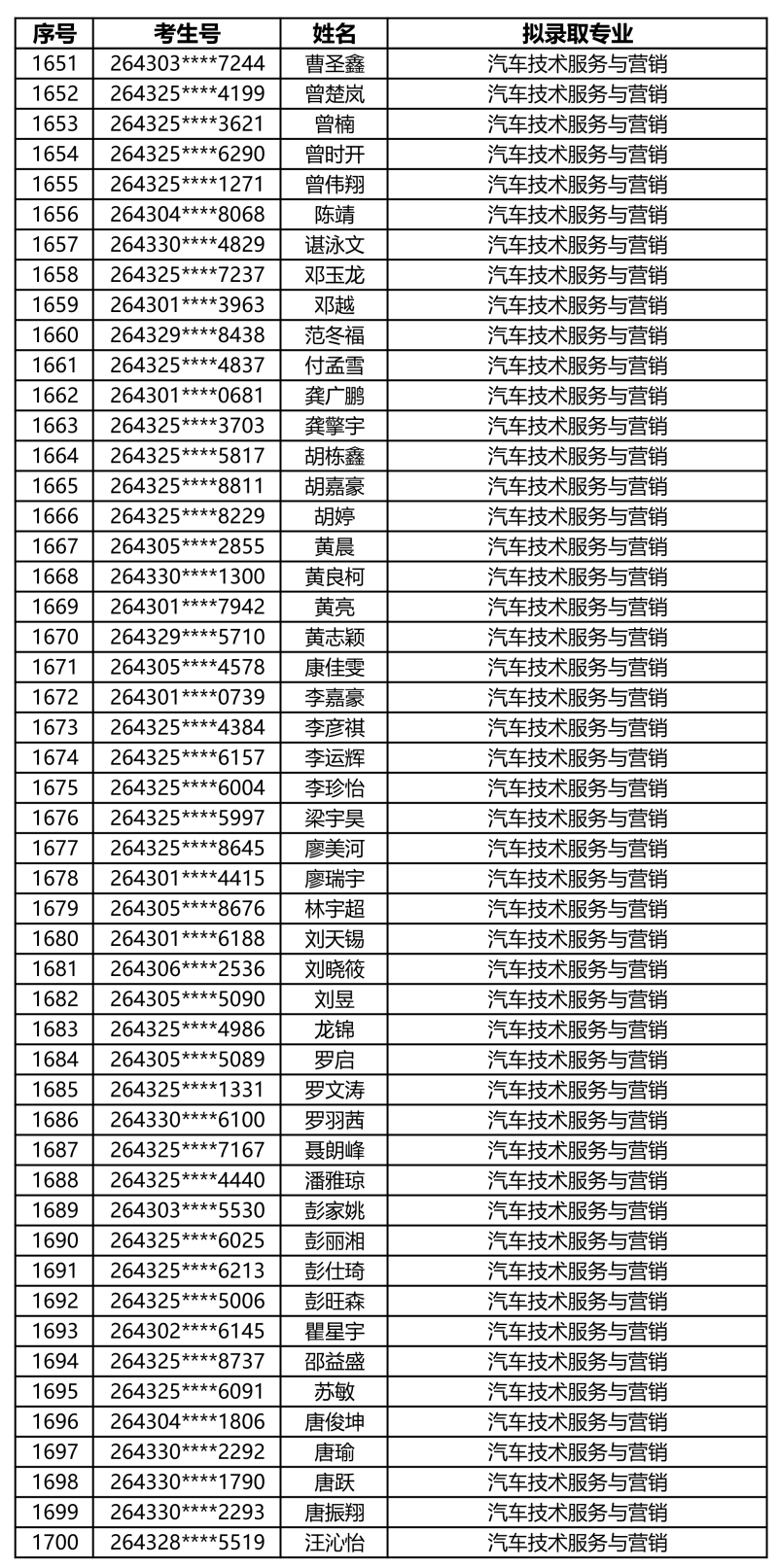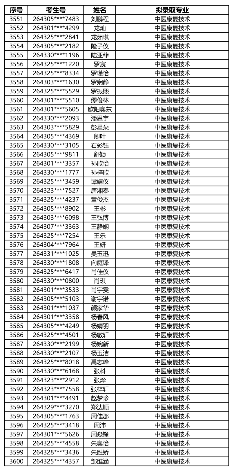娄底职业技术学院2026年单独招生拟录取名单