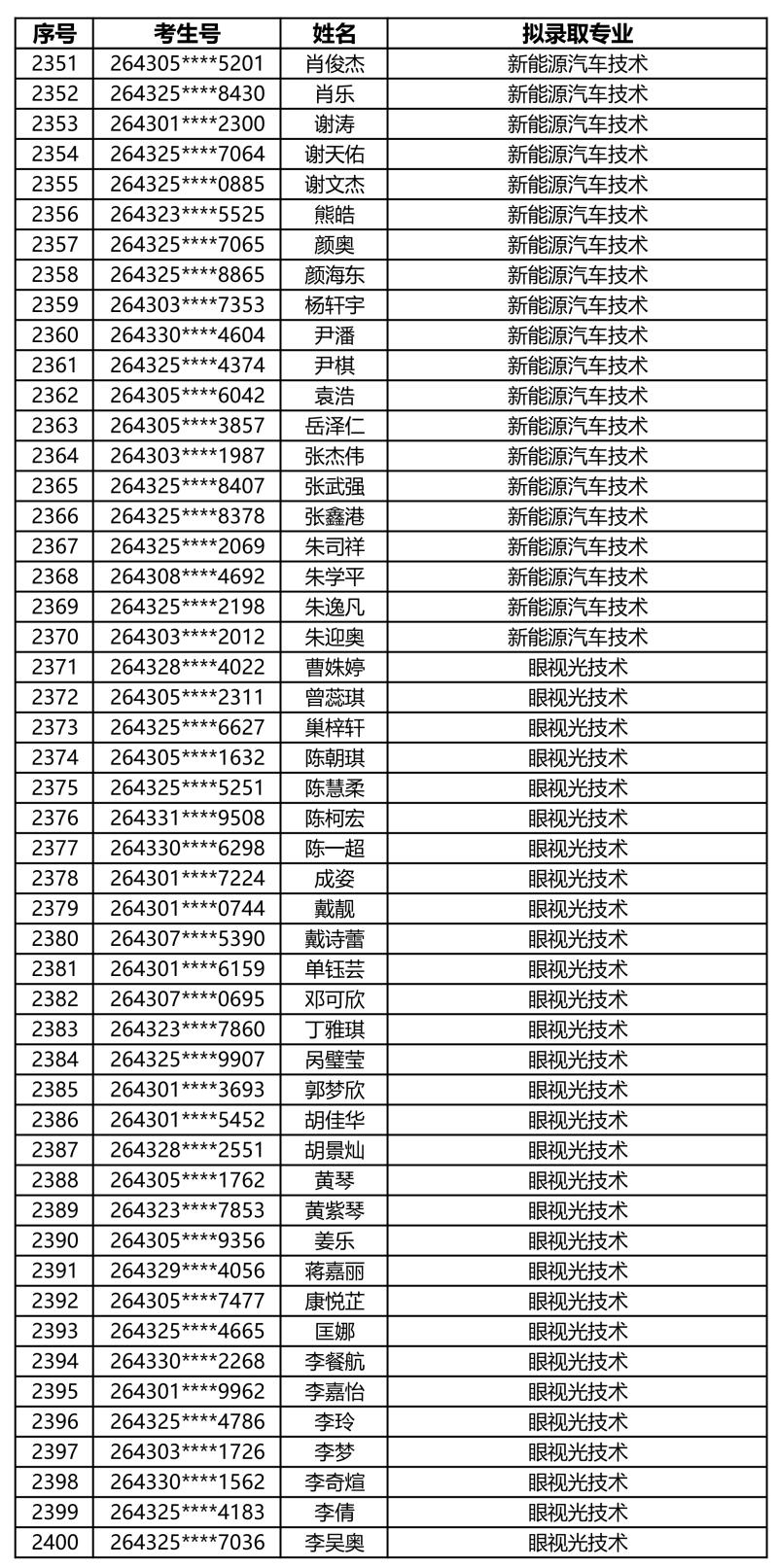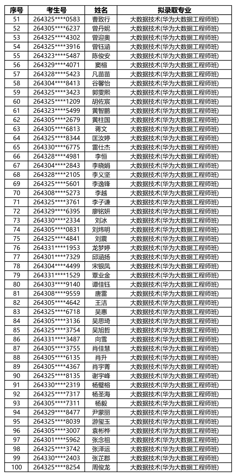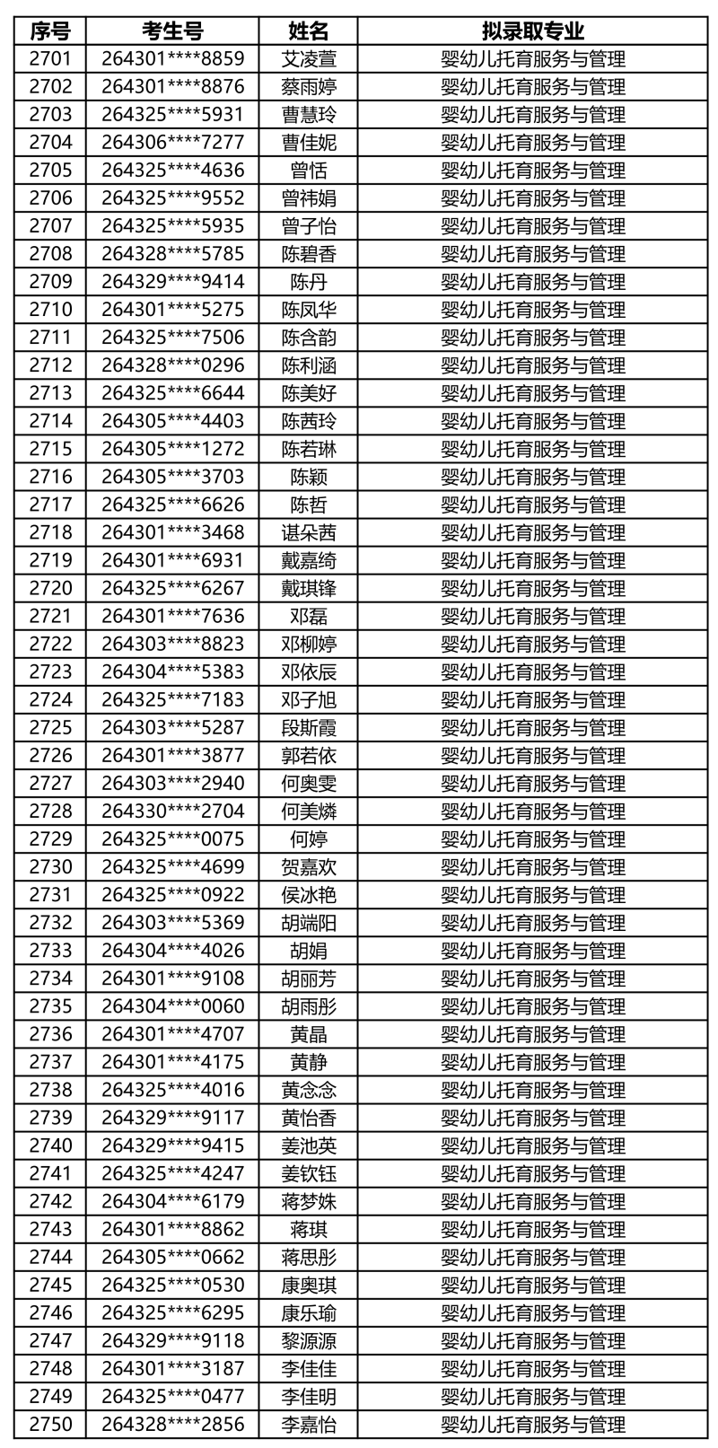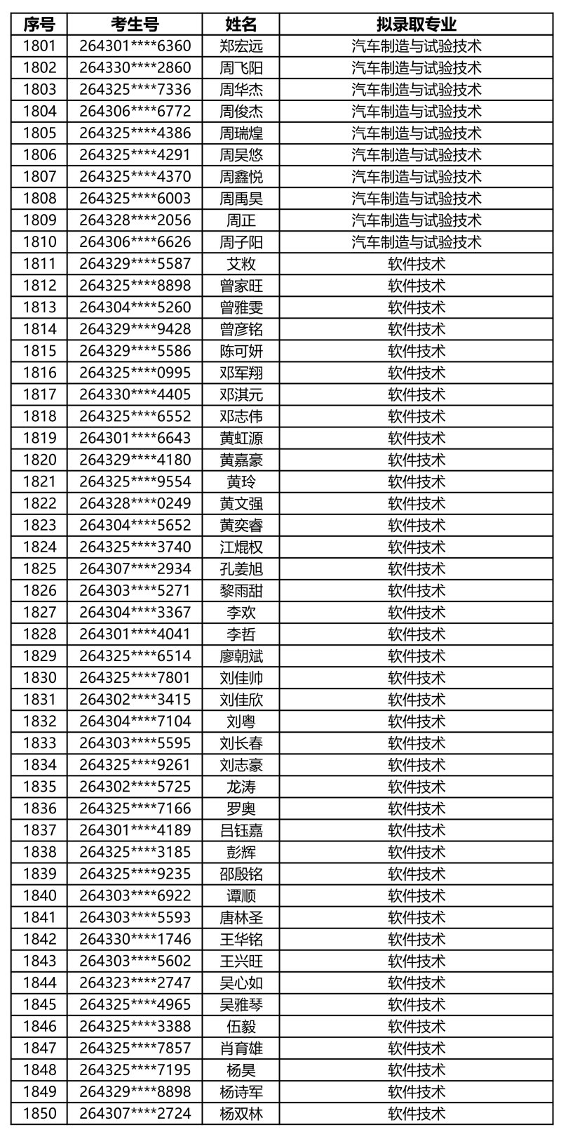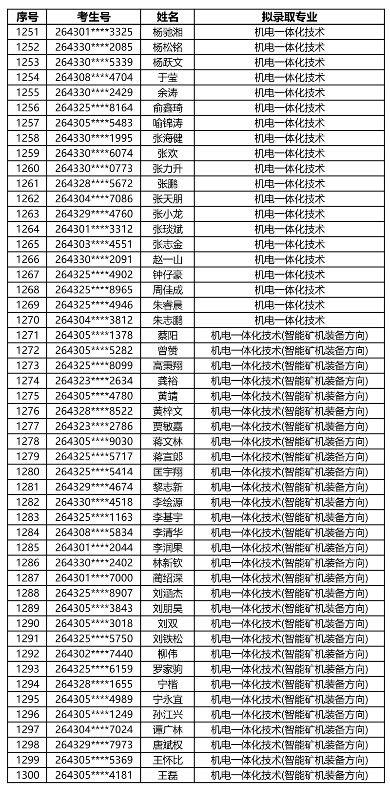 娄底职业技术学院2026年单独招生拟录取名单