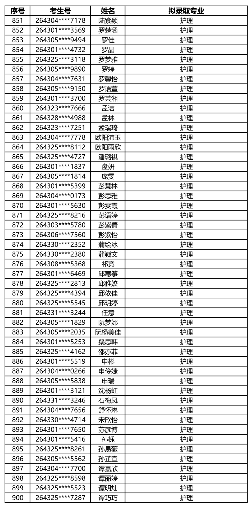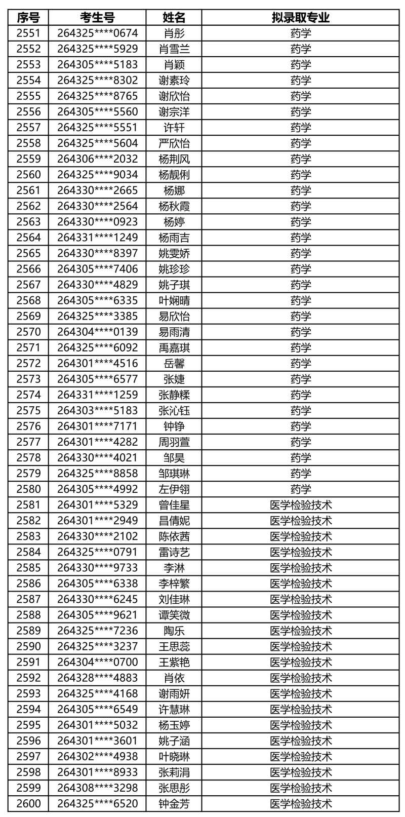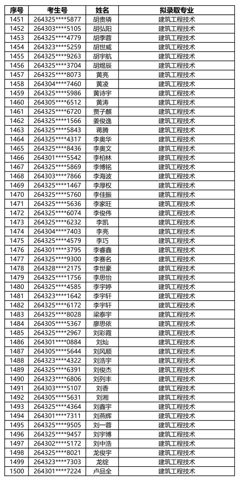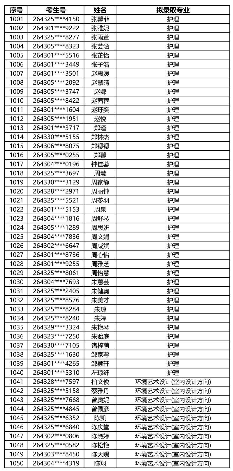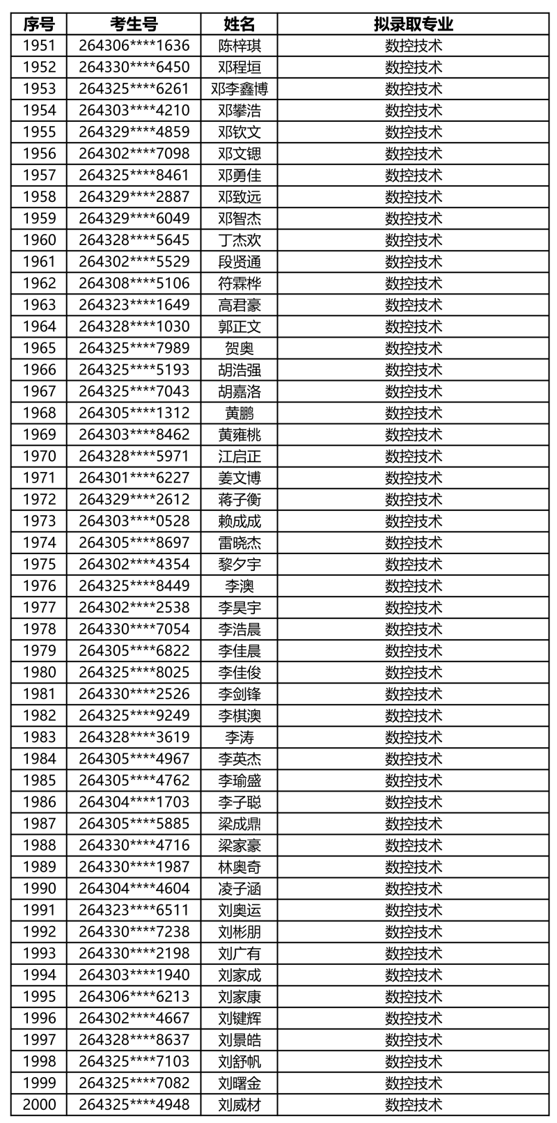 娄底职业技术学院2026年单独招生拟录取名单