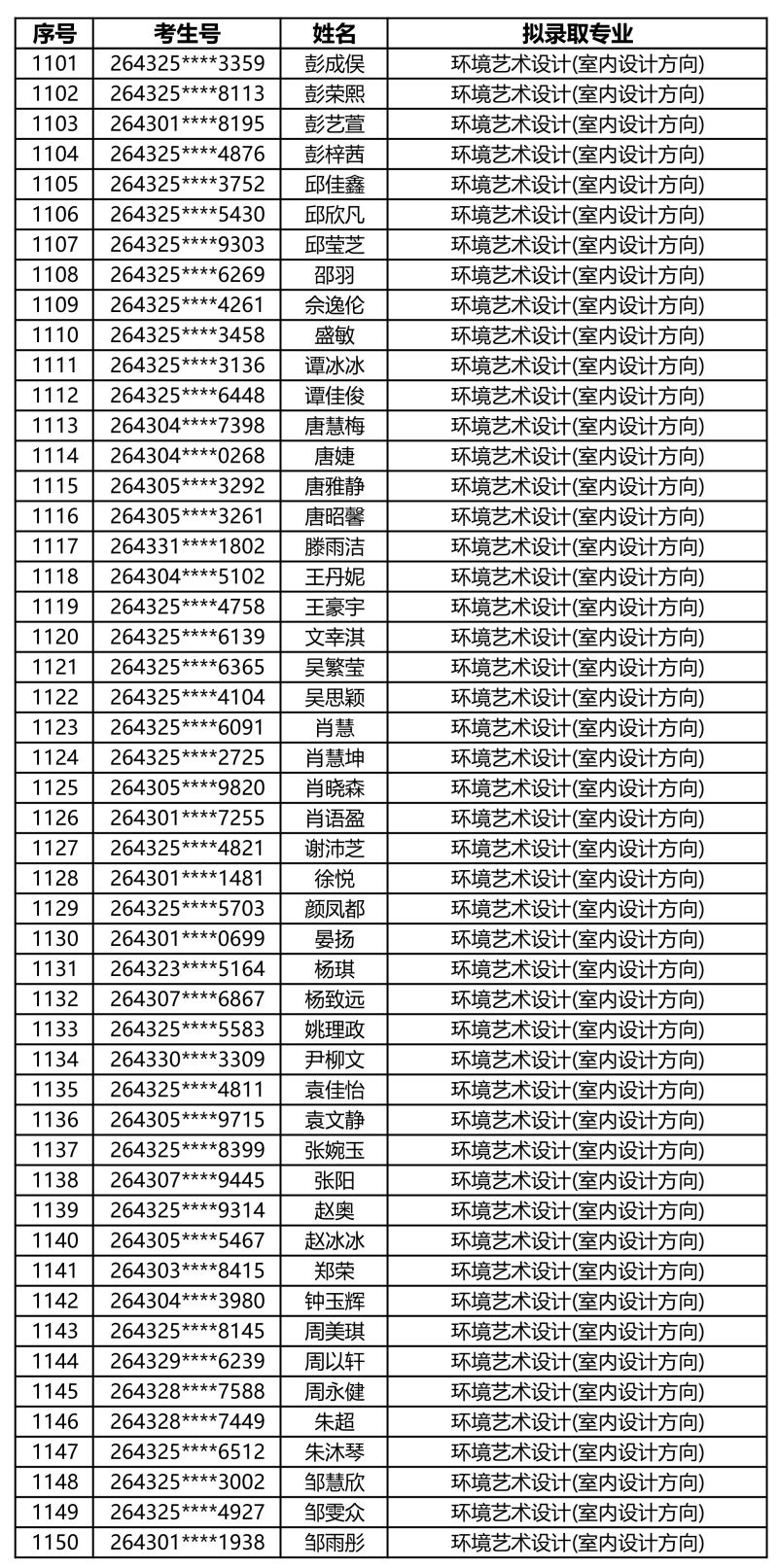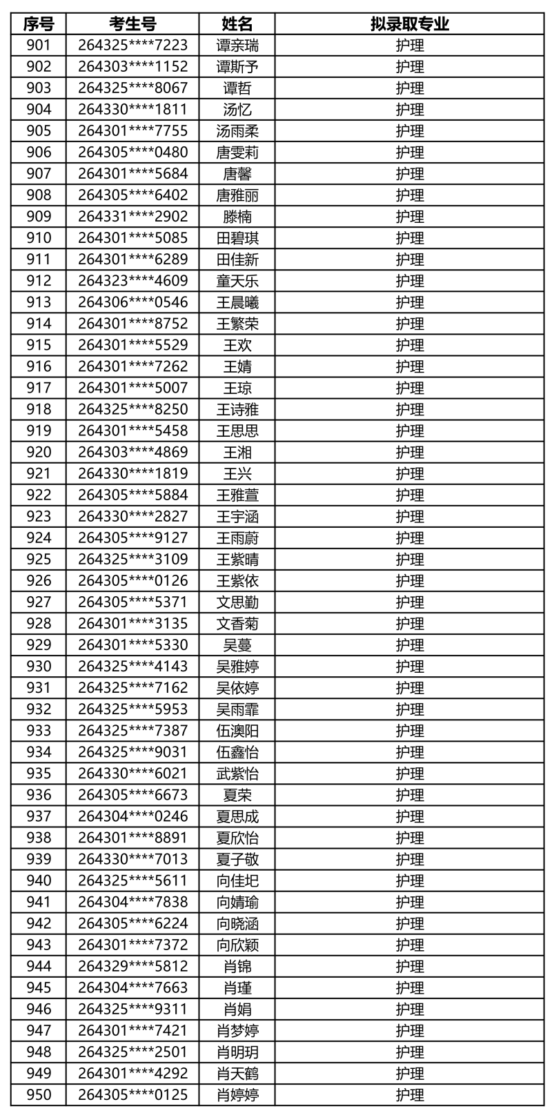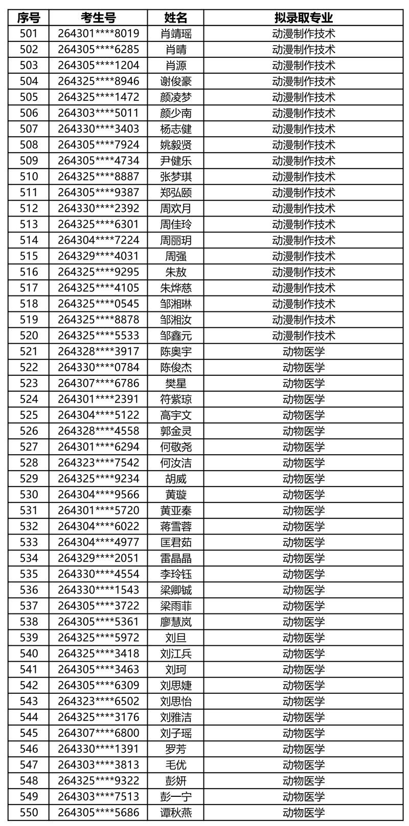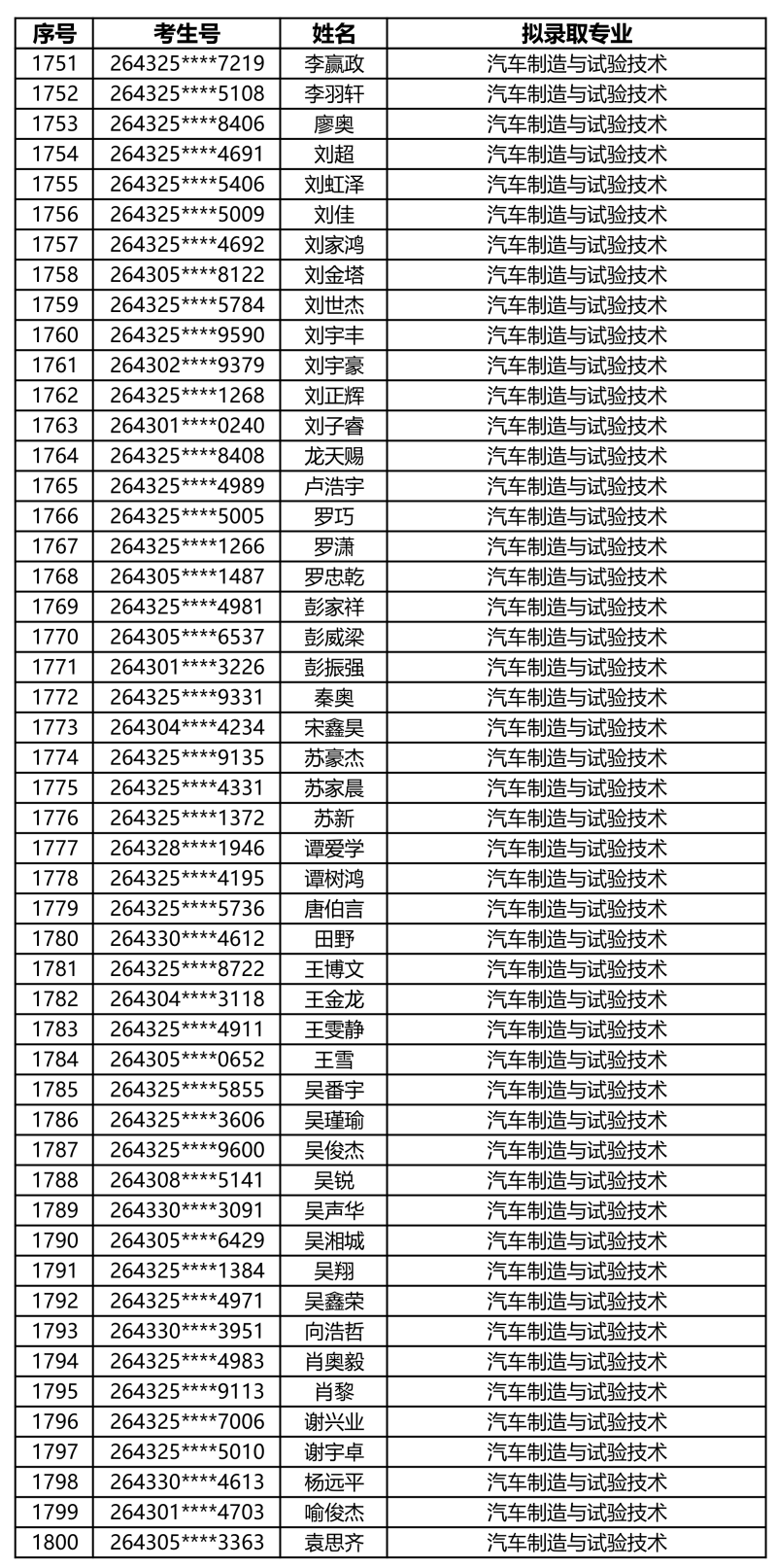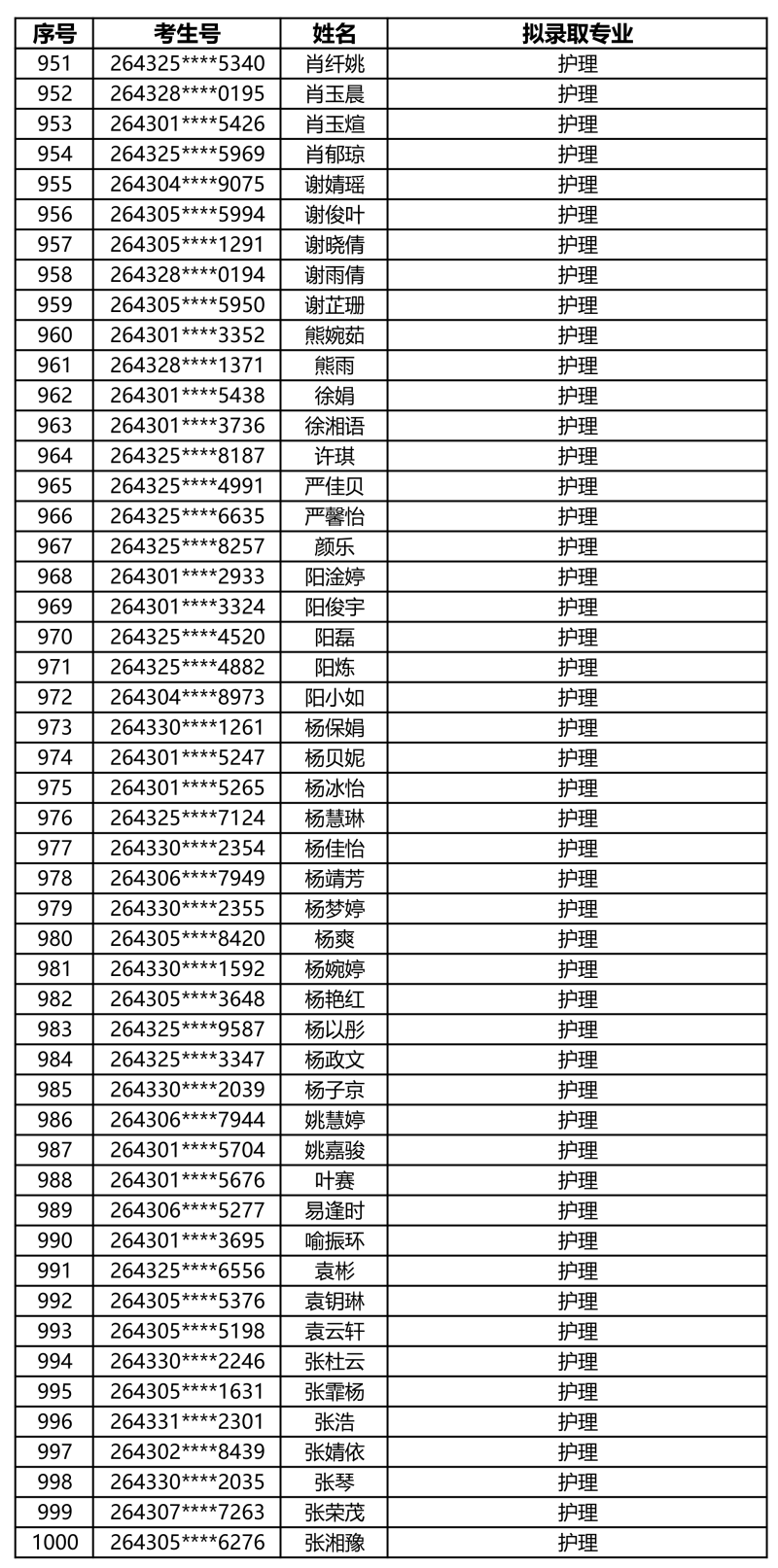 娄底职业技术学院2026年单独招生拟录取名单