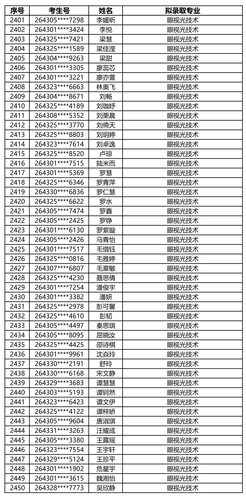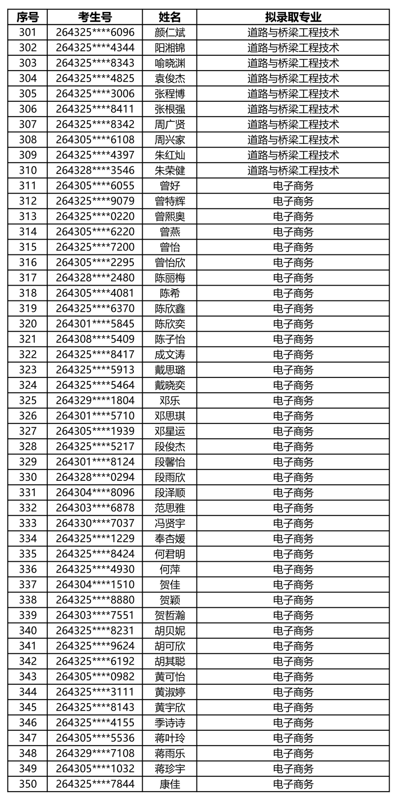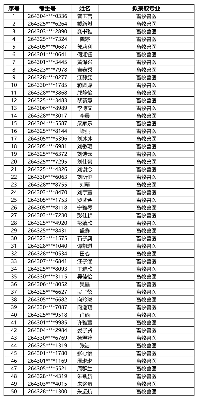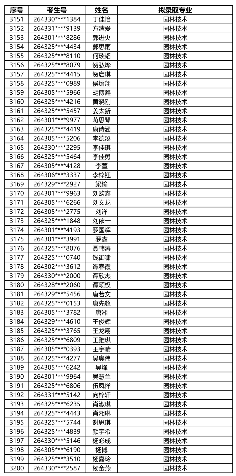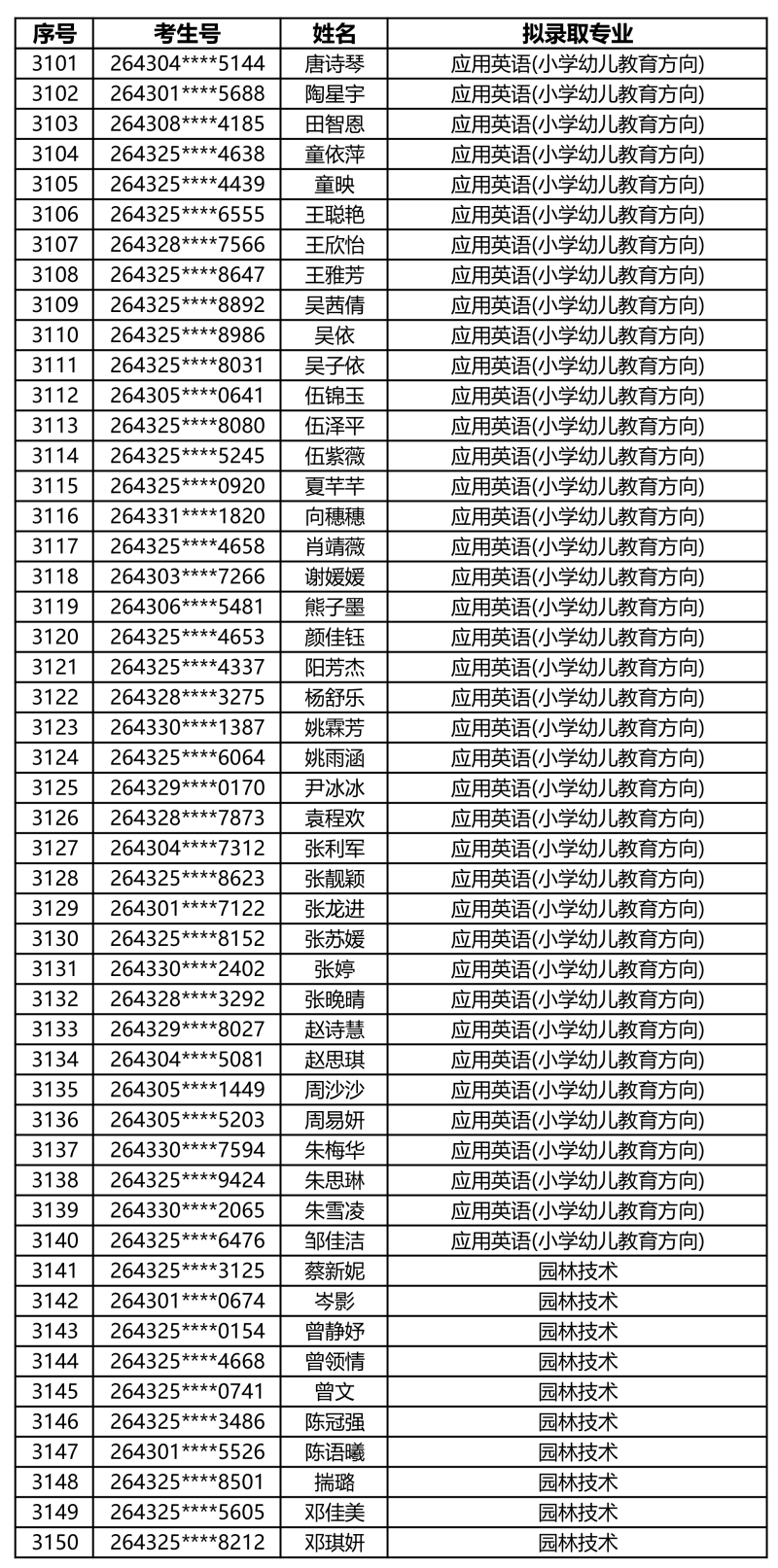 娄底职业技术学院2026年单独招生拟录取名单