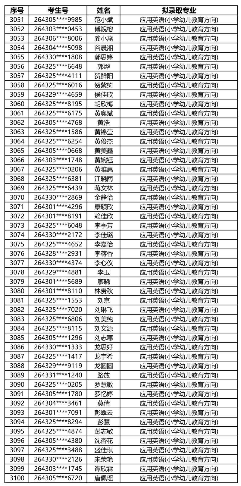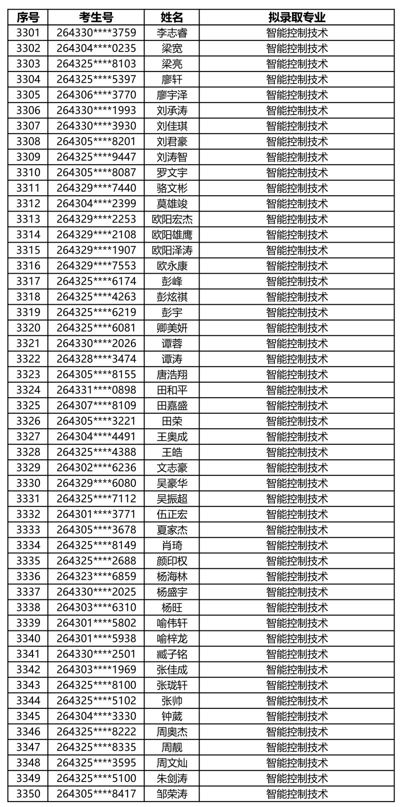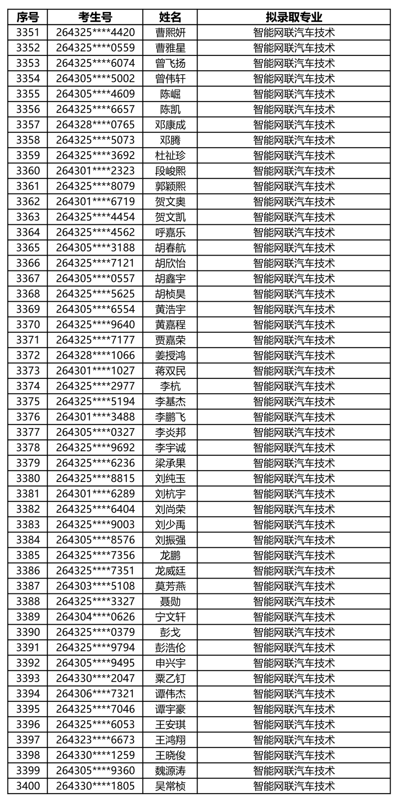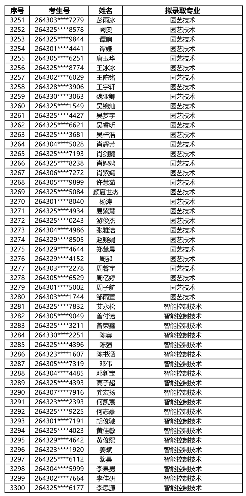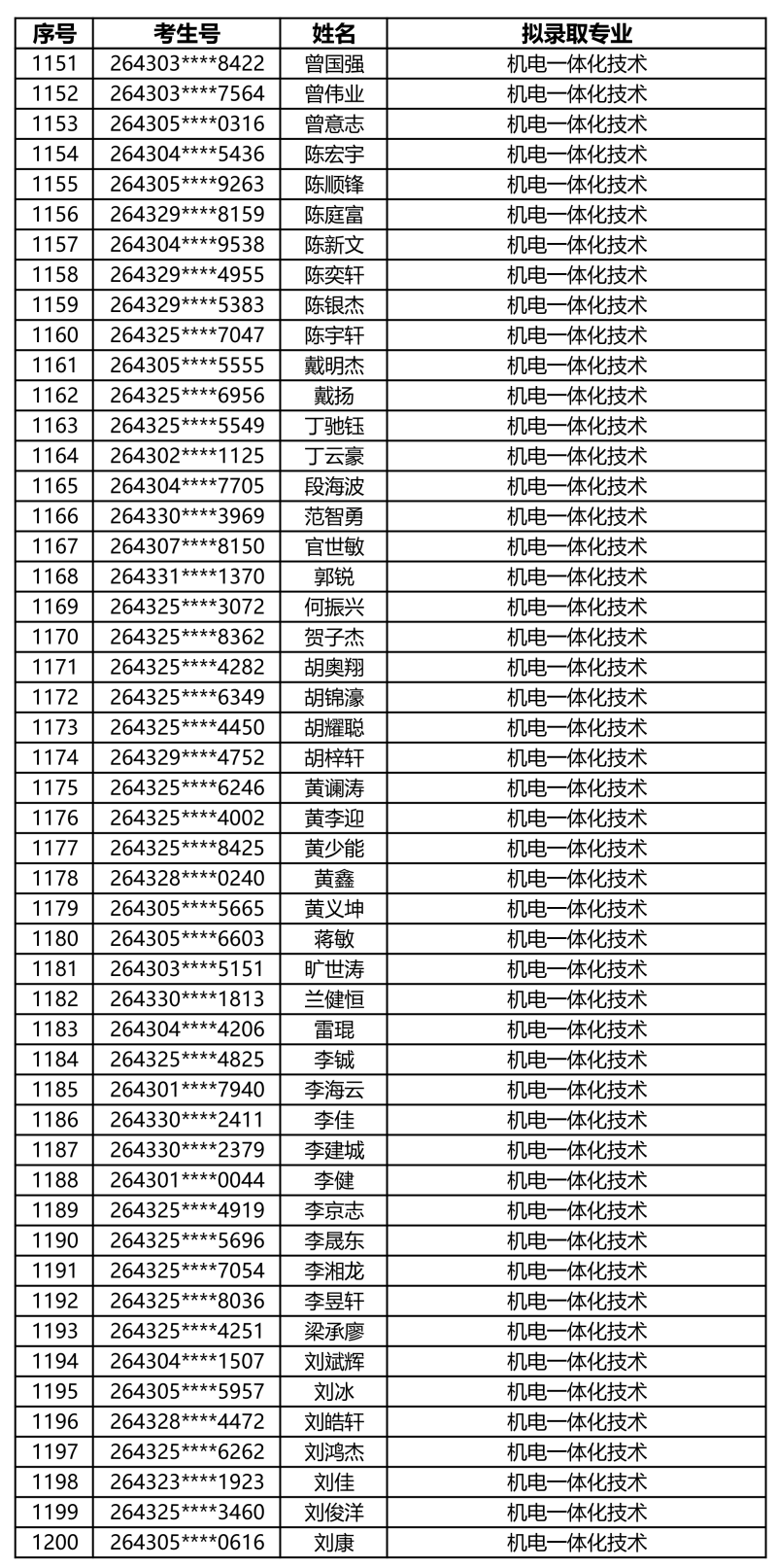 娄底职业技术学院2026年单独招生拟录取名单