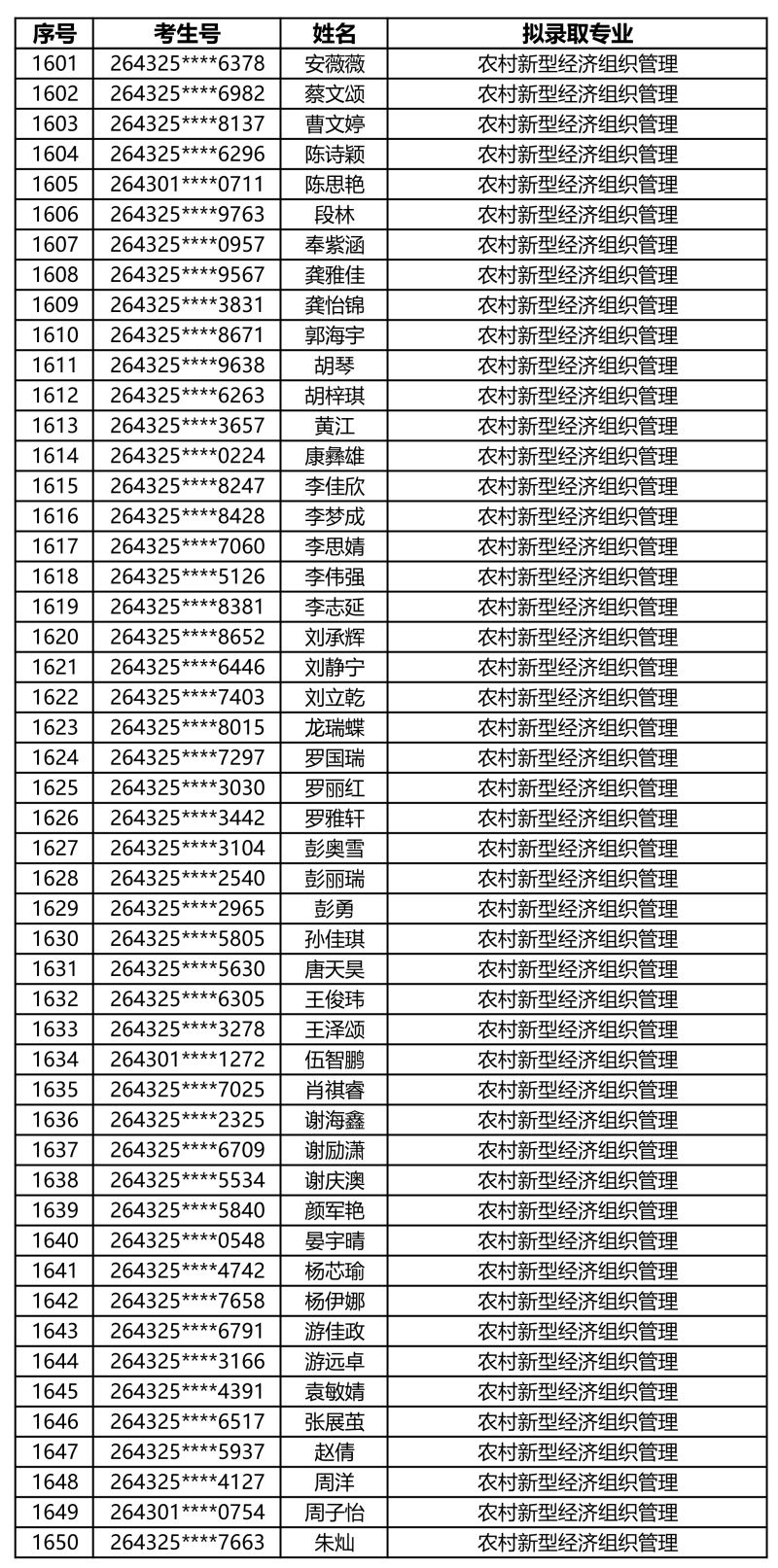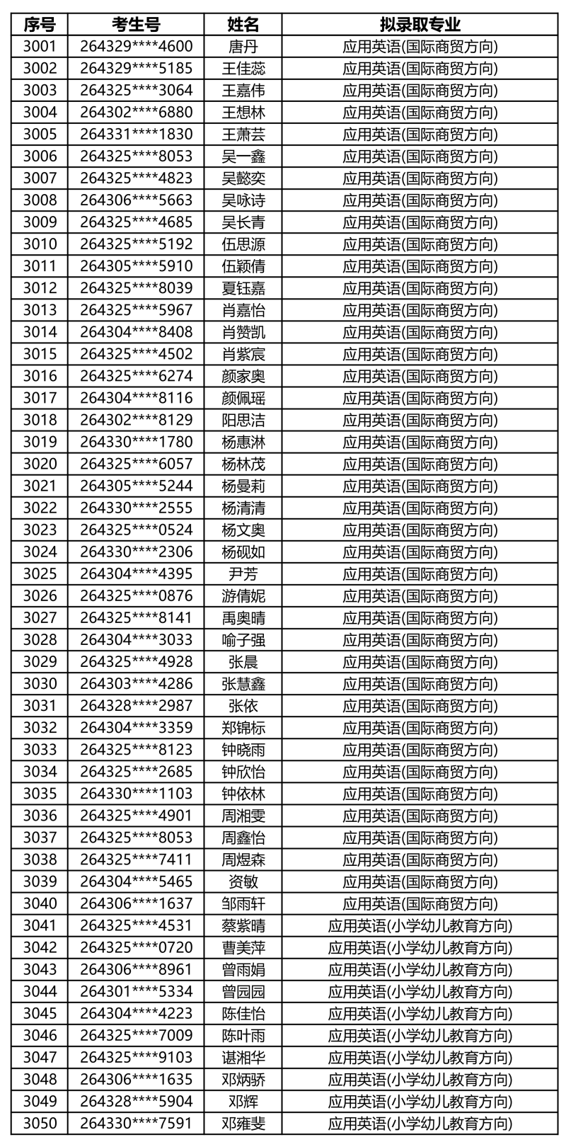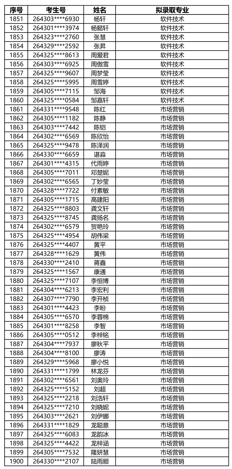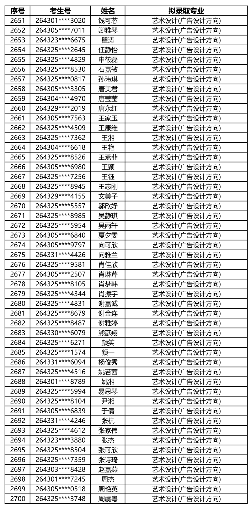 娄底职业技术学院2026年单独招生拟录取名单