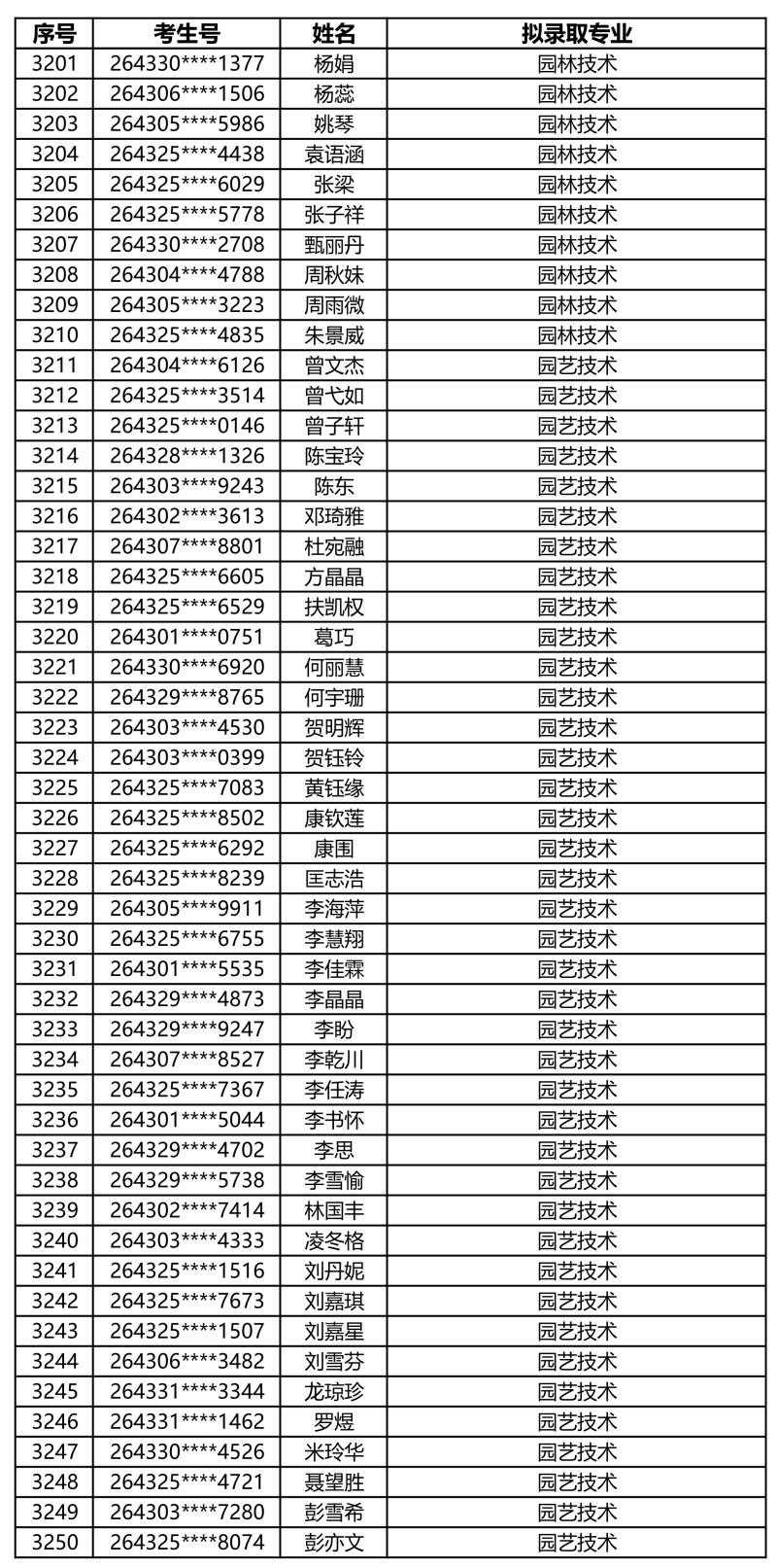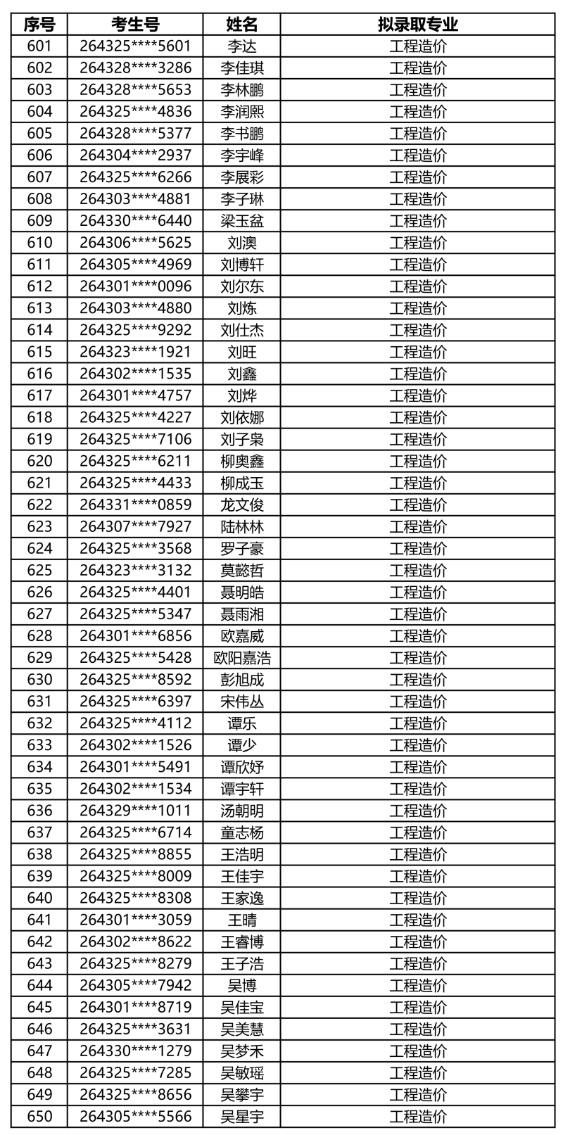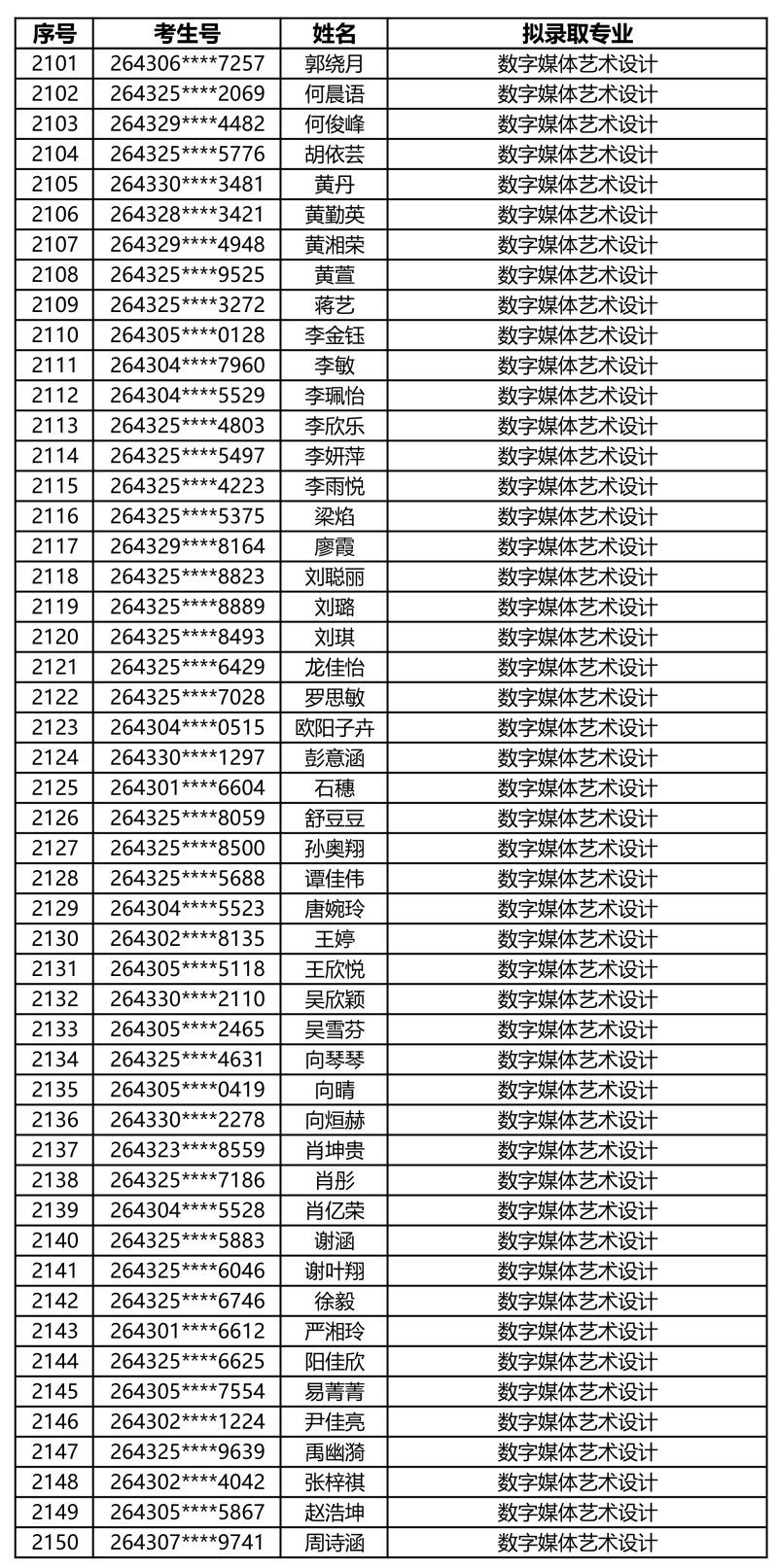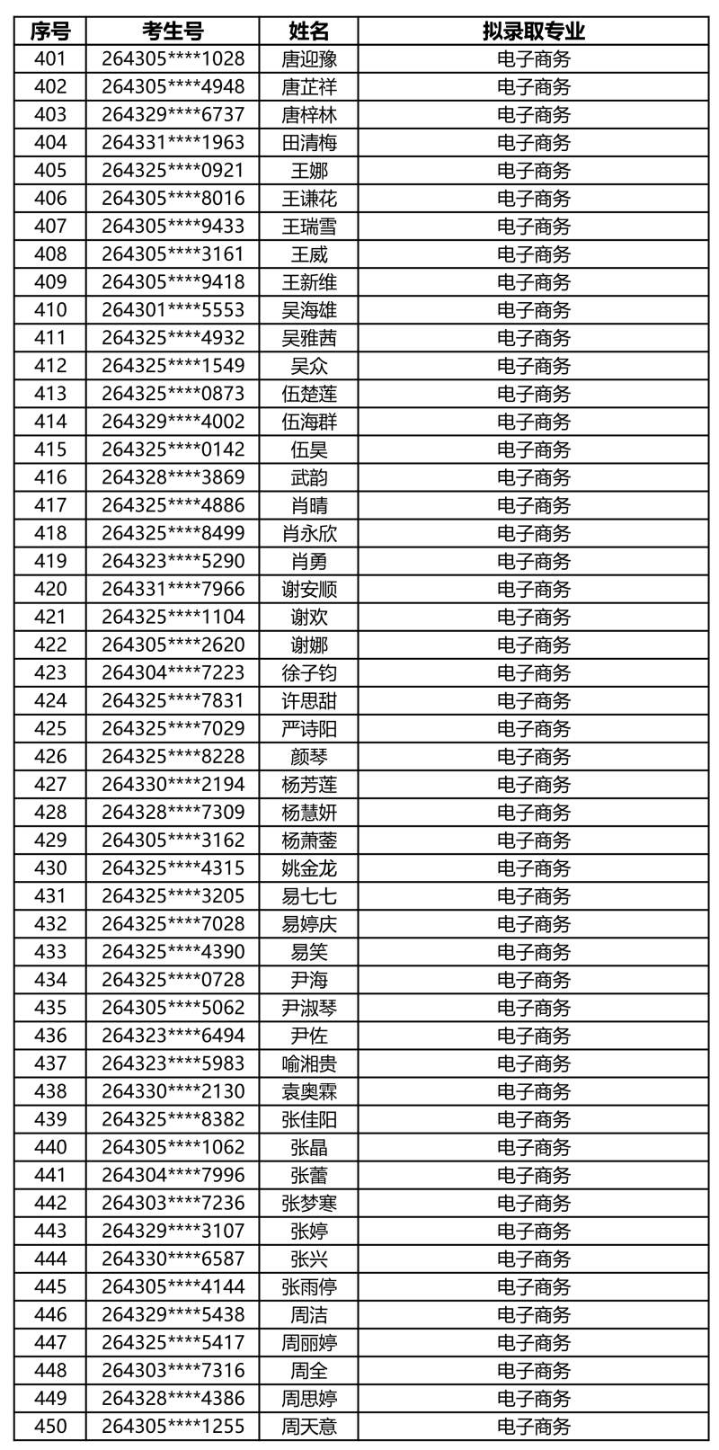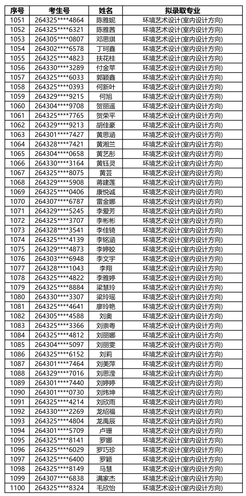娄底职业技术学院2026年单独招生拟录取名单