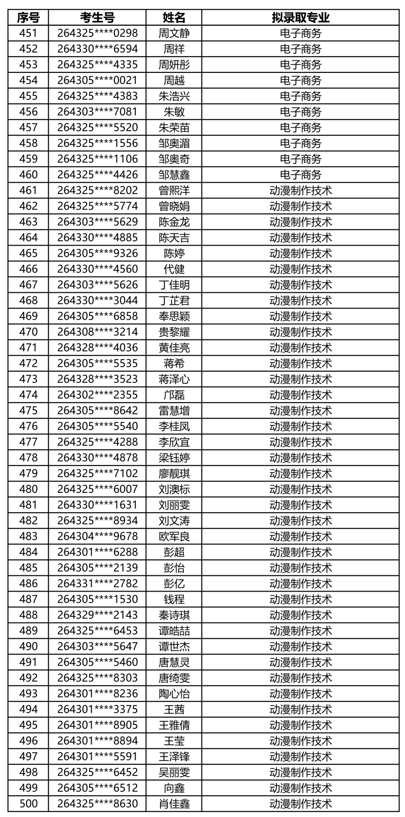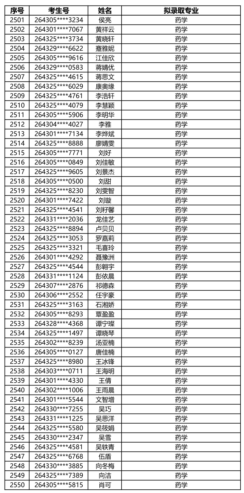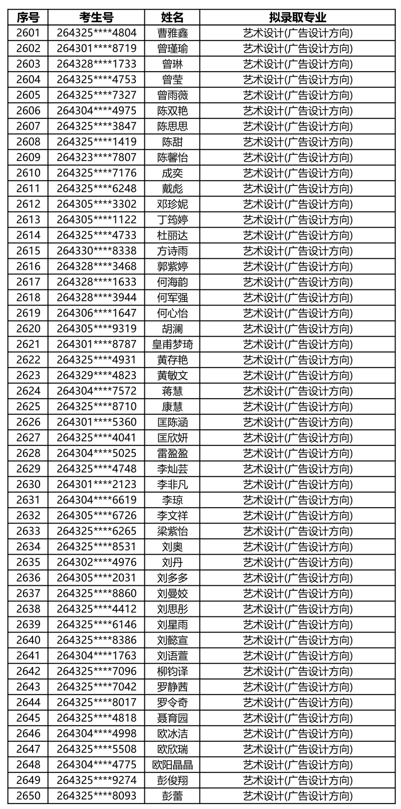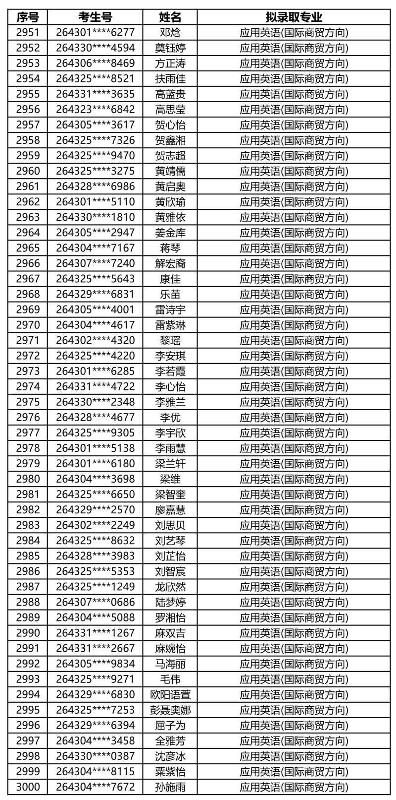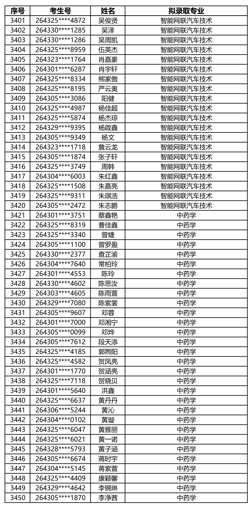 娄底职业技术学院2026年单独招生拟录取名单