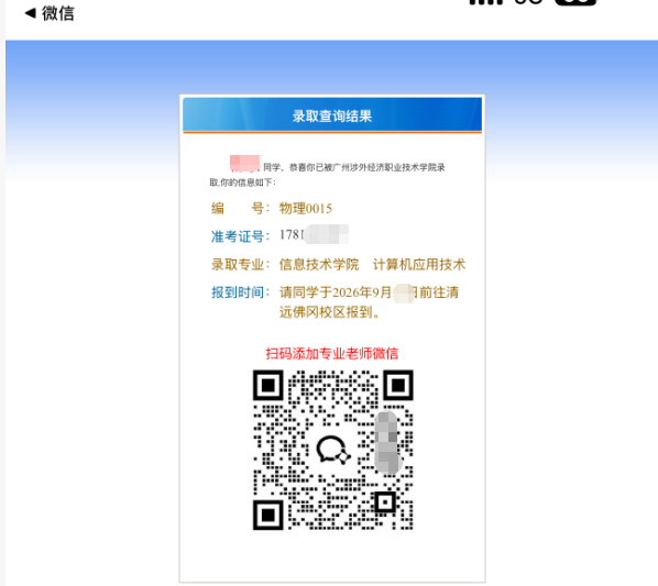 如被录取,请扫码添加对应的专业老师