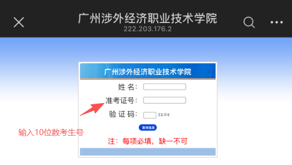 正确输入姓名及10位数准考生号