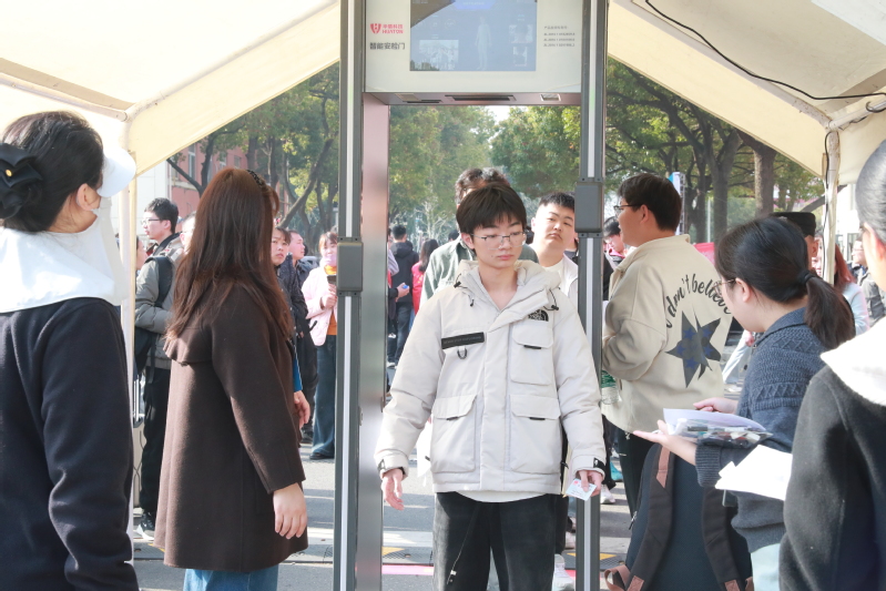 清晨,考生们凭准考证和身份证有序进入校园,在各考场楼门前整齐等候。本次校测分阶段、分区域有序开展,严格执行“智能安检门+手持金属探测器”的双重安检模式,严禁手机、智能手环等违禁物品进入考场,守护考试公平。