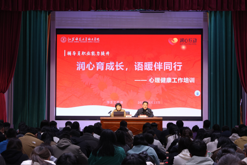 为深入践行“健康第一”教育理念,进一步织密学院心理健康防护网,提升心理骨干人员危机识别和干预能力,3月23日晚,学院组织召开2026年春季学期心理健康专题培训会。本次培训特邀省大学生心理危机干预委员会秘书长、中国矿业大学范韶维副教授主讲,分别面向一线辅导员、班主任、班级心理委员、宿管及安保人员开展专项培训。会议由院党委副书记、纪委书记王健主持。