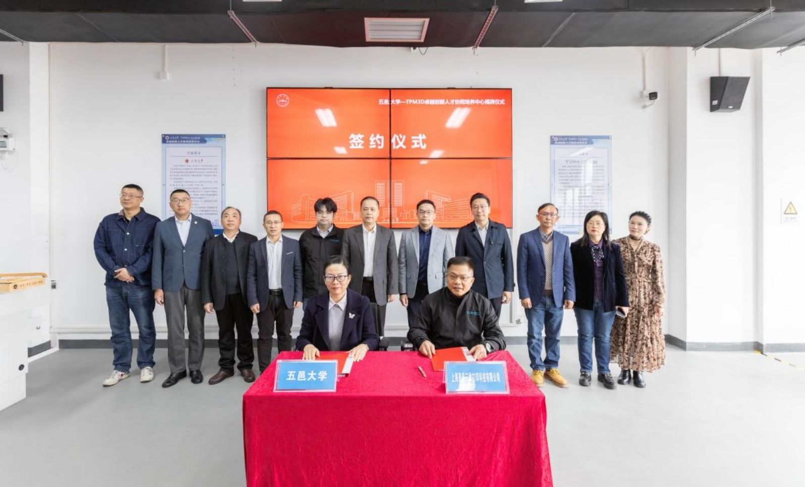 2月1日上午,五邑大学与上海盈普三维打印科技有限公司共建的“卓越创新人才协同培养中心”正式揭牌成立,这是学校深化产教融合、服务制造强国战略、推进卓越工程师培养的又一具体实践。五邑大学党委副书记、校长彭志平,党委常委、副校长董超俊,上海盈普创始人、校友招銮及企业代表、学校相关部门负责人、机械与自动化工程学院师生及校友代表等参加仪式。