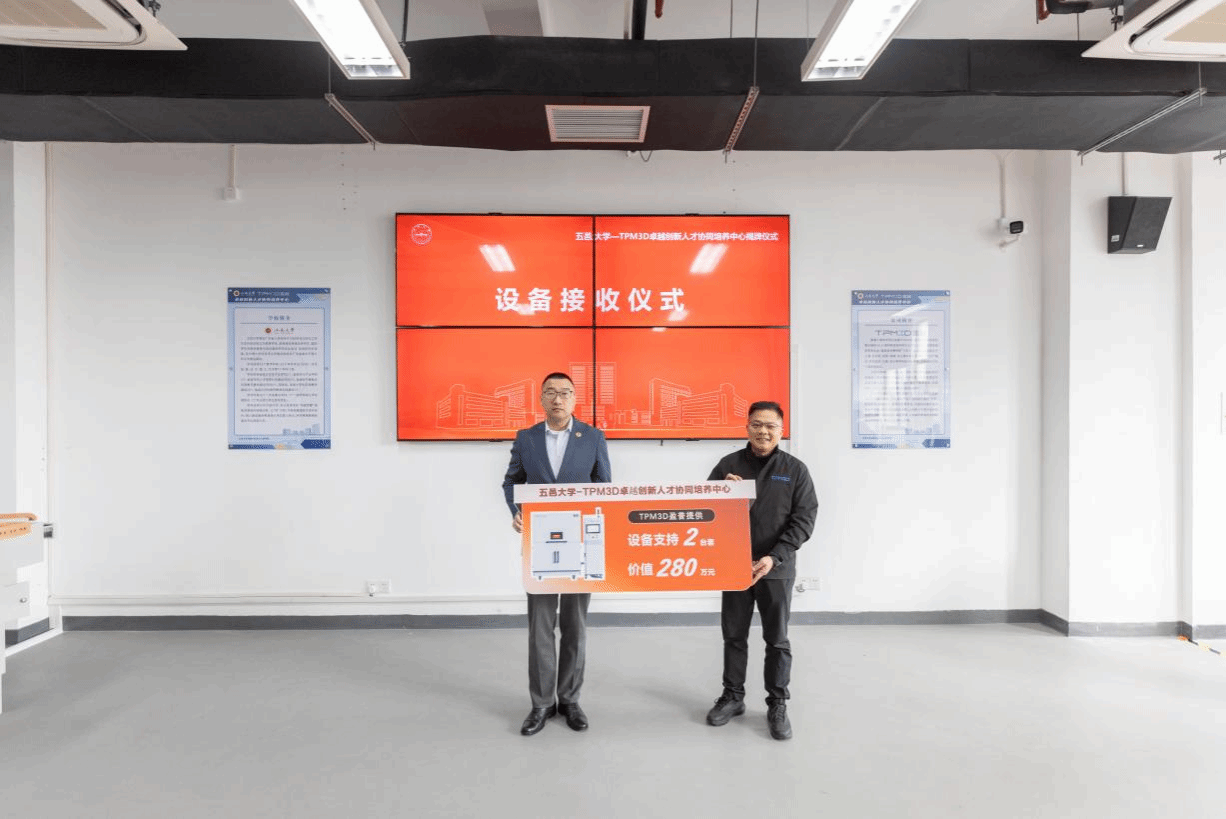 招銮在发言中回顾了在母校的学习经历,强调人才是产业发展的核心动力。他表示,盈普将把工业级3D打印设备、技术标准及真实项目引入学校课堂,推动校企深度融合,助力学生“在校接触真实产业,掌握企业所需技能”,着力破解人才培养与产业需求脱节难题。