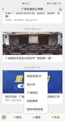 第一步:登录广东石油化工学院官网(https://www.gdupt.edu.cn/),点击右上角“综合服务”。