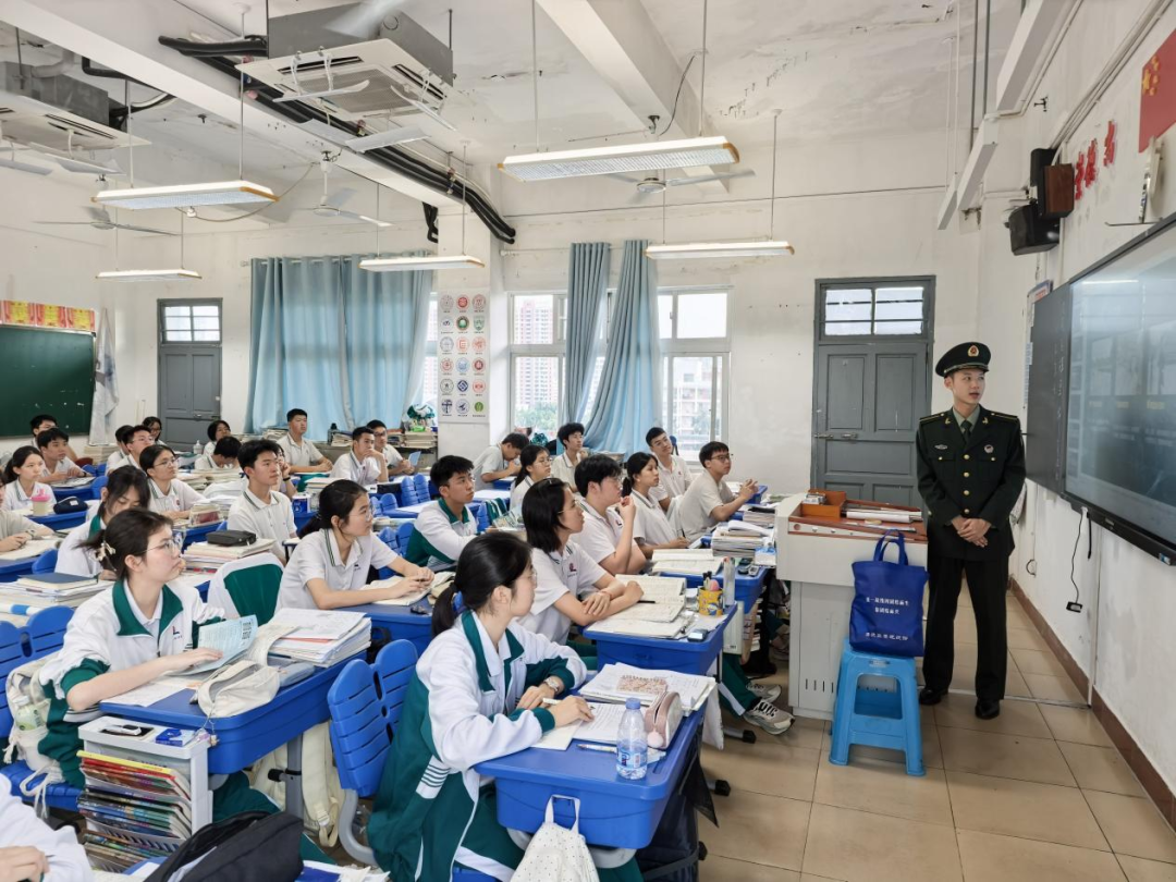 华南师范大学附属中学宣讲活动以“政策解读+成长分享”的形式展开,宣讲团结合军校学习、训练、科研经历,生动展现军校生活。互动环节,宣讲团逐一解答现场提问,鼓励大家把个人理想融入强军兴国事业。