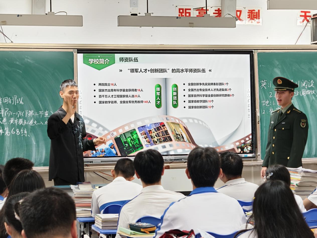 此次宣讲让我深感欣慰与自豪。昔日青涩学子如今身着戎装归来,身姿挺拔、言辞坚定,尽显军人风范与责任担当。他们以亲身经历分享专业选择与备考经验,传递家国情怀与强军志向。本次宣讲不仅是招生信息传递,更是一堂生动深刻的国防教育课。愿高三学子以他们为榜样,树立远大理想,逐梦路上勇毅前行,未来投身国防事业,书写青春华章。