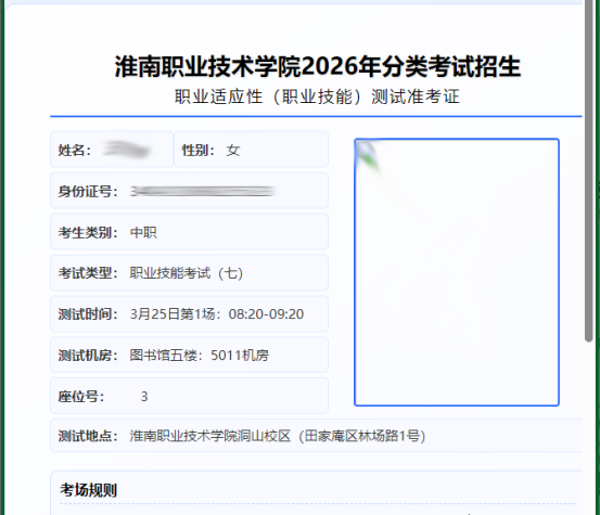 手机端:考生通过微信搜索“淮南职业技术学院服务号”公众号,或直接扫描下方二维码。点击“我的”-“打印准考证”。