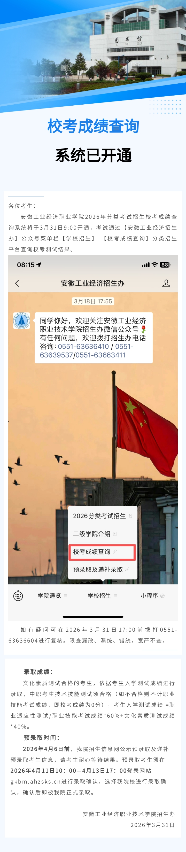 学院2026年分类考试招生成绩查询