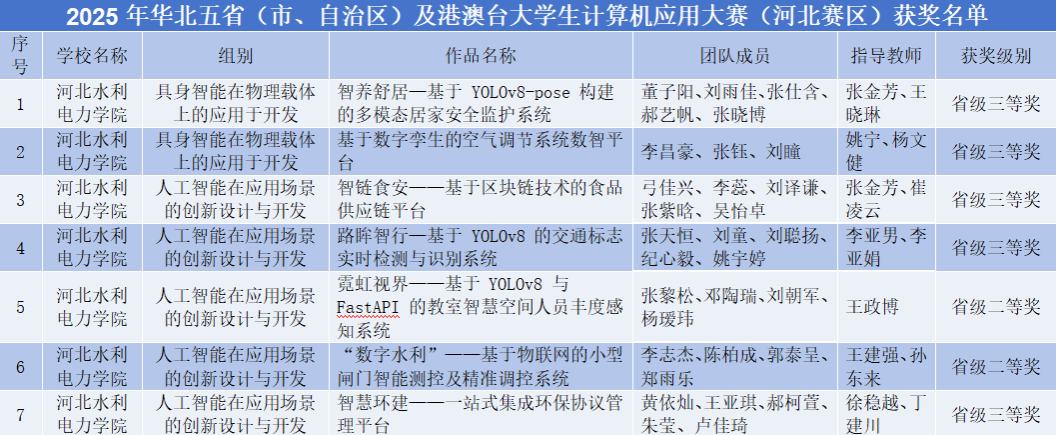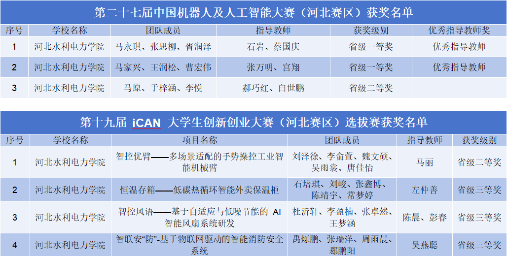 近日,河北省教育厅公布了2025年第十一届河北省大学生工程实践与创新能力大赛、2025年华北五省(自治区、直辖市)大学生机器人大赛等多项学科竞赛获奖名单。我校学子凭借扎实的专业知识、过硬的实践能力和创新精神,在人工智能、机器人、数学建模、艺术设计等多个领域的竞赛中脱颖而出,共斩获奖项40项,其中一等奖9项、二等奖10项、三等奖11项,同时获评优秀指导教师奖9项、优秀组织奖1项,充分展现了学校在人才培养和学科建设方面的卓越成效。