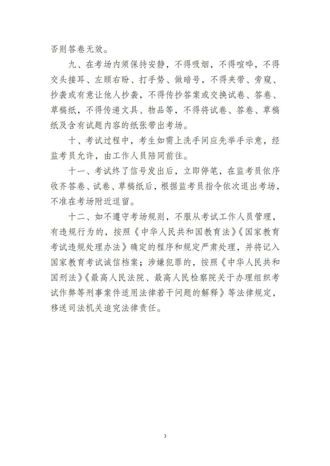 (三)考生守则