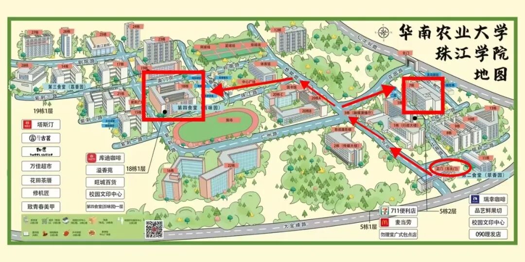 注意:2026年考生统一从东北门进入,考场安排在7栋、18栋教学楼,如下图指引进入