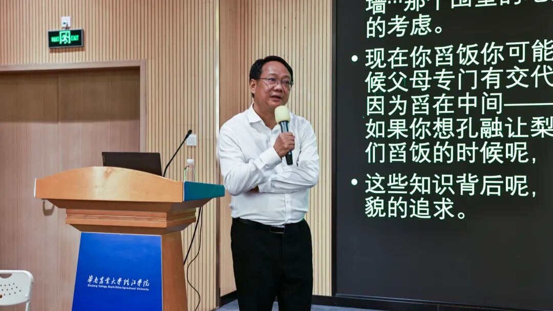 为深入贯彻国家文化战略,科学保护方言文化资源,搭建方言研究、传播与应用一体化交流平台,近日,由华南农业大学珠江学院主办、人文学院承办的“文脉赓续·乡音新声——方言的文化传承与当代研究”论坛在珠江剧院、20栋B101报告厅顺利举行。广东省新闻出版局原党组书记、局长陈俊年,广东外语外贸大学中国语言文化学院教授、国家社科基金重大项目首席专家严修鸿,暨南大学华文学院院长侯兴泉教授等三位方言与文化领域权威专家主讲,全校千余名师生分批次参与学习,共同探讨方言保护传承与创新发展之路。