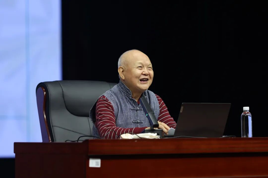 当日下午,严修鸿教授以《从方言中我们学到什么》为题开讲。严教授以幽默风趣的语言,结合数十年方言田野调查经验,解读方言与地理、人文的深层关联,分享“檐老鼠”“大咖”等方言词语的探源故事,阐释“酒头茶尾饭心里”等俗语蕴含的生活智慧。他现场演绎粤北土话,展示方言音韵之美,强调方言是文学创作宝库与文化基因载体,呼吁师生珍视方言资源,借助新媒体参与方言传承,让方言文化活在当下、融入生活。