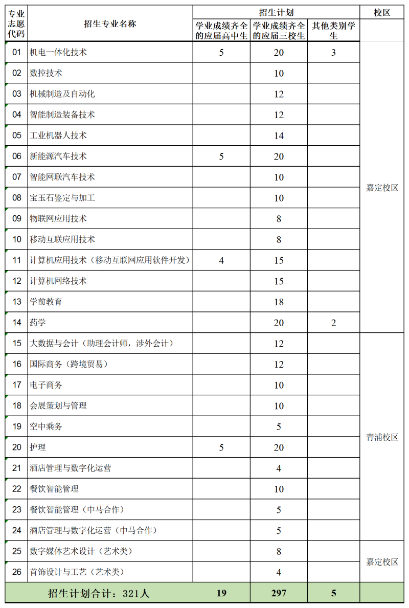 2026年我校自主招生批次第二次征求志愿开启,本次征求志愿321名,其中学业成绩齐全的应届高中生19人,学业成绩齐全的应届三校生297人,其他类别学生5人以进档考生所填报的第一专业为录取专业。招生专业含一般及艺术类共计26个。