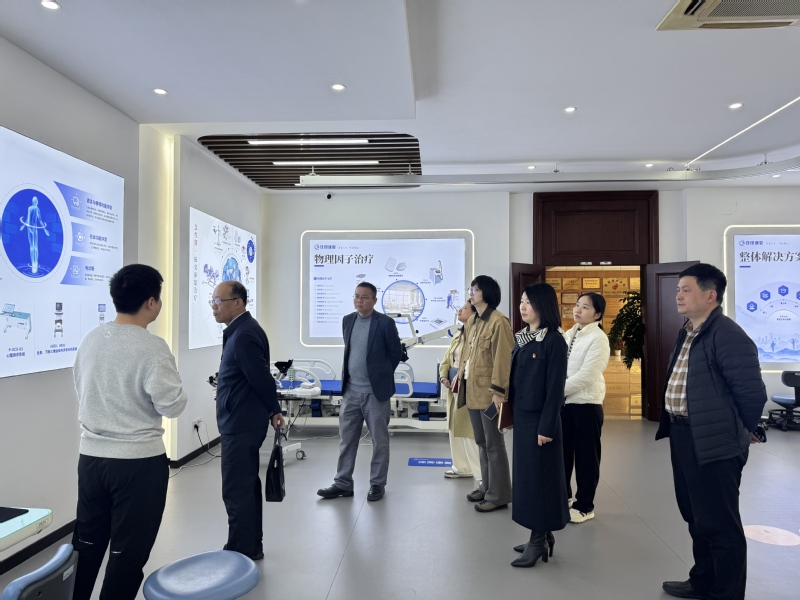 在钱璟康复相关负责人的陪同下,王志华一行深入企业产品展厅、智能康复训练系统演示中心及研发基地,实地察看企业自主研发的智能康复训练系统、动静态平衡评估设备、特殊儿童早期干预器材等核心产品,详细了解各类设备在医疗机构、养老机构、社区康养中心及特殊教育学校等多元场景的实际应用成效,重点询问企业在技术研发、产品迭代、人才需求等方面的情况,直观感受康养产业的发展活力与前沿趋势。