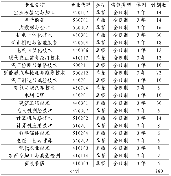 第十五条2026年学院在河南省单独考试招生专业21个,计划260人,具体招生专业及计划如下。