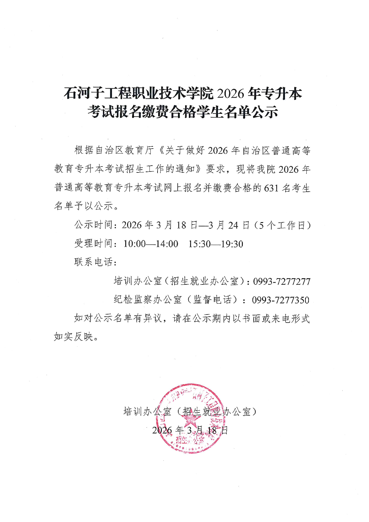 2026年专升本考试报名缴费合格学生名单公示