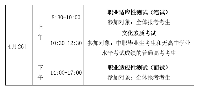 (一)考试时间:4月26日(具体时间及要求见准考证)