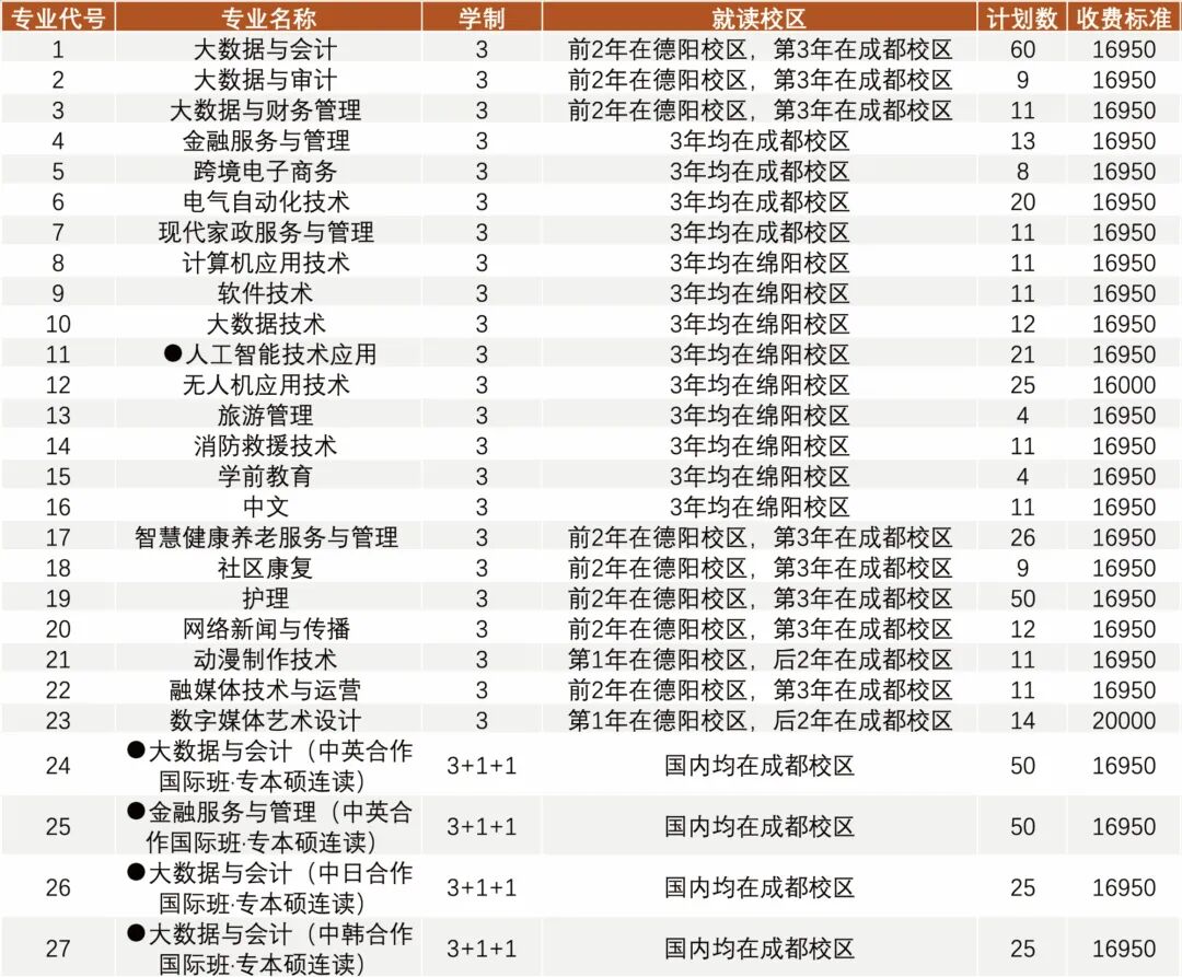 专业名称和学费两栏中带O者,除专科学费外,还需缴纳其它费用。其中,报名人工智能技术应用专业的新生需向校企合作方缴纳产教融合专项培养费;报名专本硕连读双文凭国际班的新生需缴纳专项培训费(详情请查看我校官网)。专本硕连读双文凭国际班计划招生人数包含在高职单招总计划中,不单列。