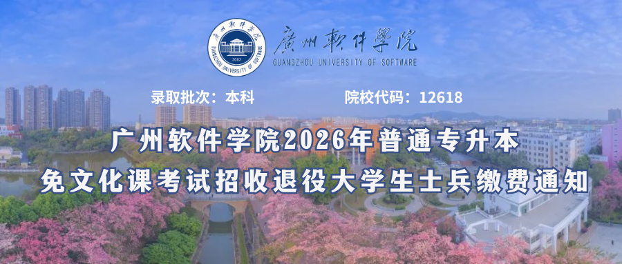 广州软件学院2026年退役大学生士兵普通专升本招生计划数及综合考查缴费通知想了解更多报考问题