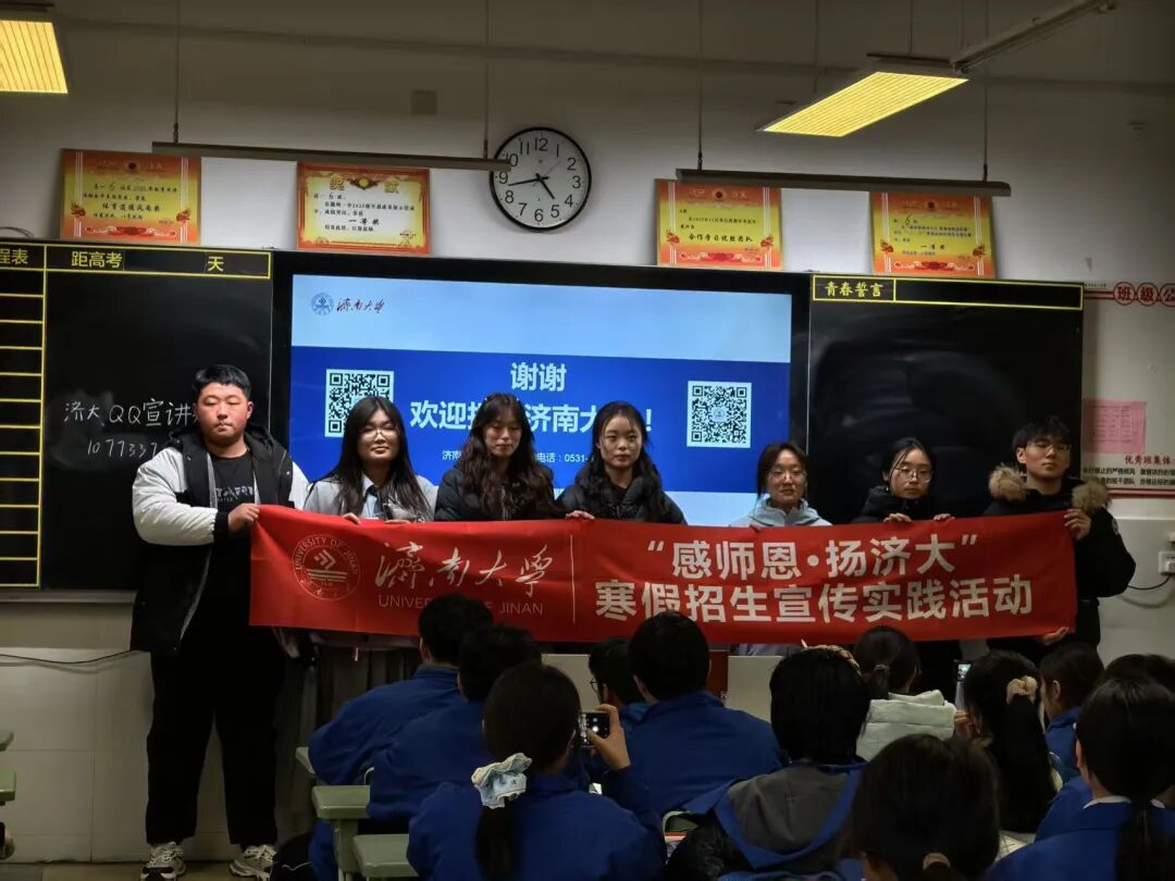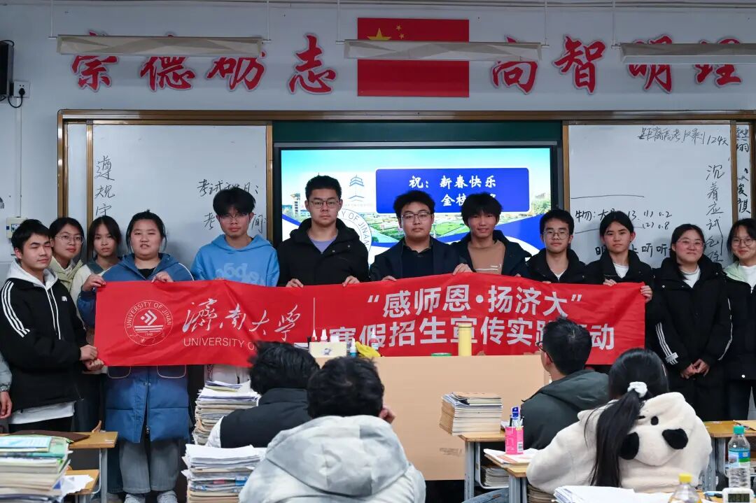 春和景明,济大情长。这个寒假,济南大学“感师恩·扬济大”招生宣传实践活动温暖启航。济大学子怀揣沉淀与收获重返母校,以亲历者的真诚讲述校园风华,以传承者的担当传递济大精神,把“弘毅、博学、求真、至善”的校训力量化作照亮前路的点点星光,为逐梦少年指引前行的方向。