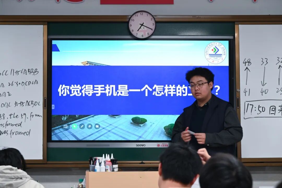 本次宣讲以“核心优势+鲜活素材+真实故事”为主线,系统梳理济南大学的学科广度、“双一流”建设势头、科研与就业资源等核心优势,并通过播放图文PPT、宣传片及赠送济大专属文创礼品,全方位增强吸引力。宣讲以“我为什么选择济大”为切入点,分享自身从迷茫到坚定的成长故事拉近距离;随后,借助校园四季风光、深夜实验室的专注身影、社团竞赛的热血瞬间等鲜活画面,生动展现济大学子的多彩生活与奋斗姿态。设置问答环节,以食堂美食、保研率、转专业成功案例等真实细节,耐心回应同学们的关切,有效激发了学弟学妹们的报考热情。