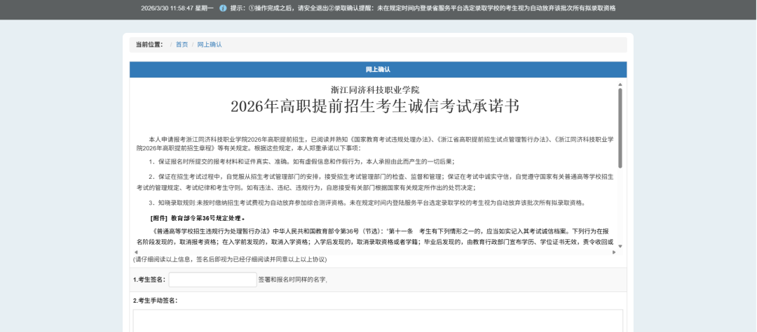 考生承诺在线确认
