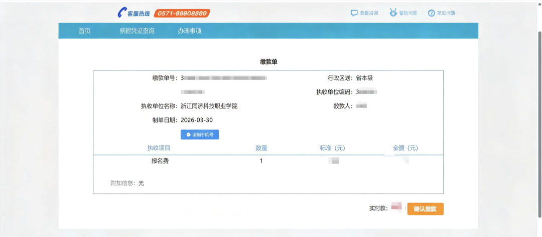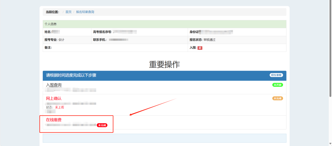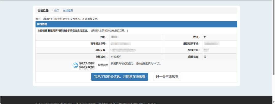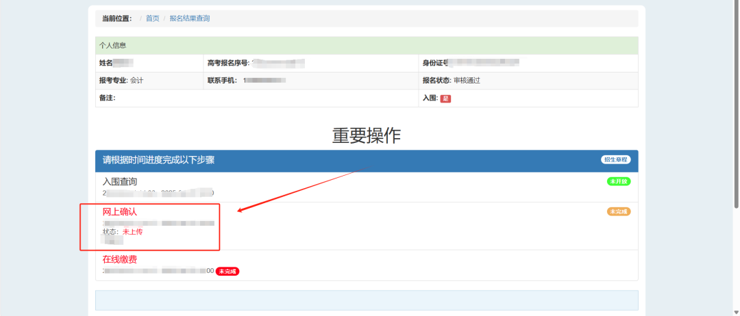 网上确认和缴费流程