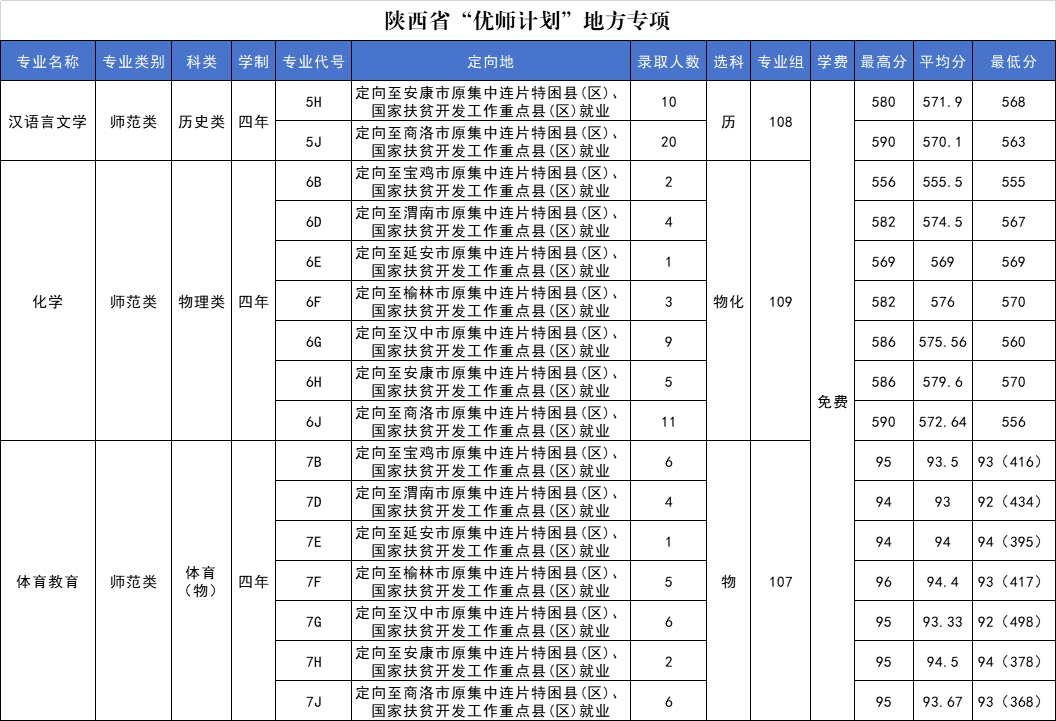 延安大学2025年陕西省“优师计划”地方专项在陕招生录取分数