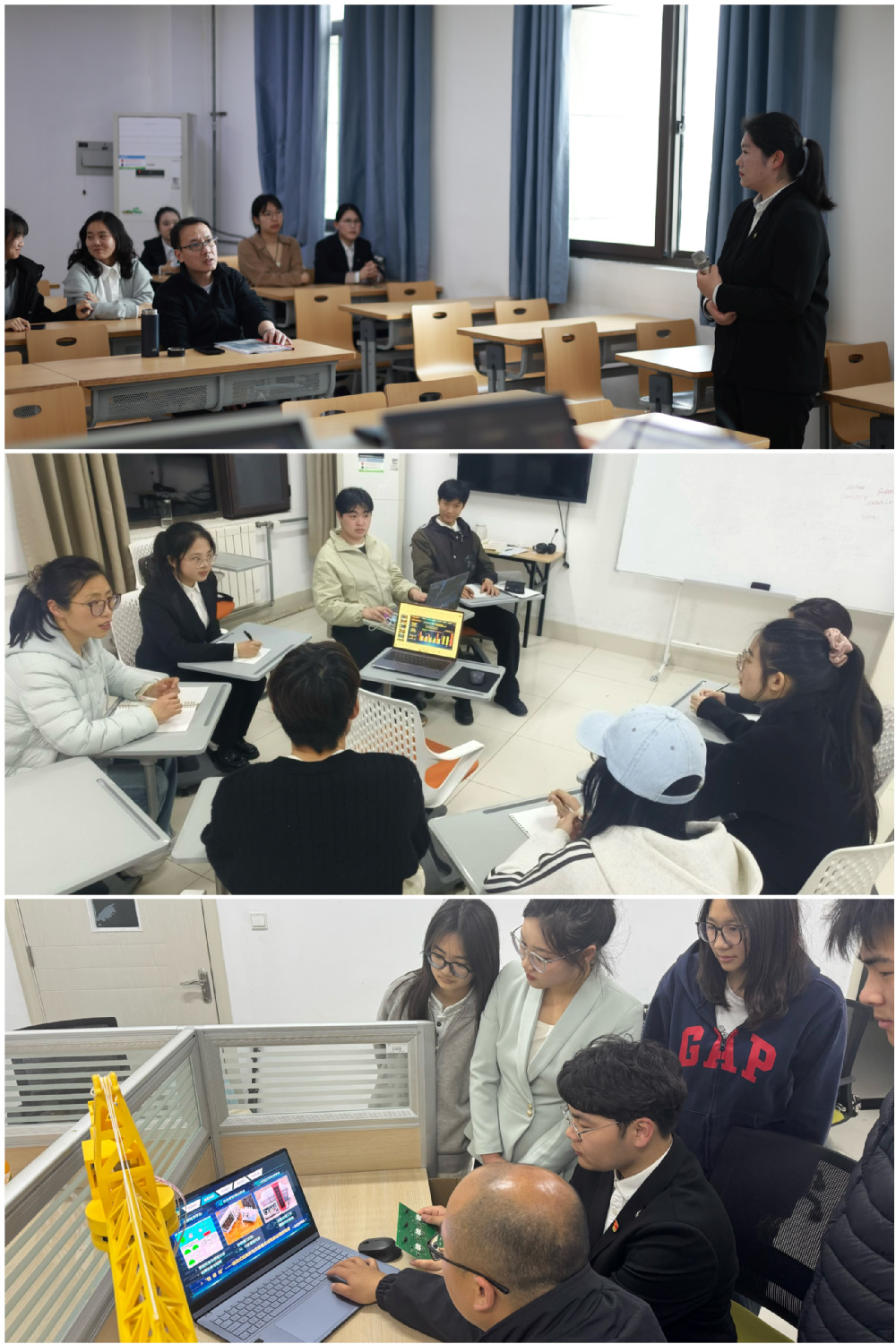 决赛采用“项目汇报+现场答辩”形式,各团队按要求在展示项目核心技术、市场前景与社会价值,并沉着应答评委关于技术可行性、商业模式等方面的提问。评委从创新性、实践性等维度综合评审,结合行业前沿与政策导向,提出了技术迭代、成本控制、团队协作等方面的优化建议。
